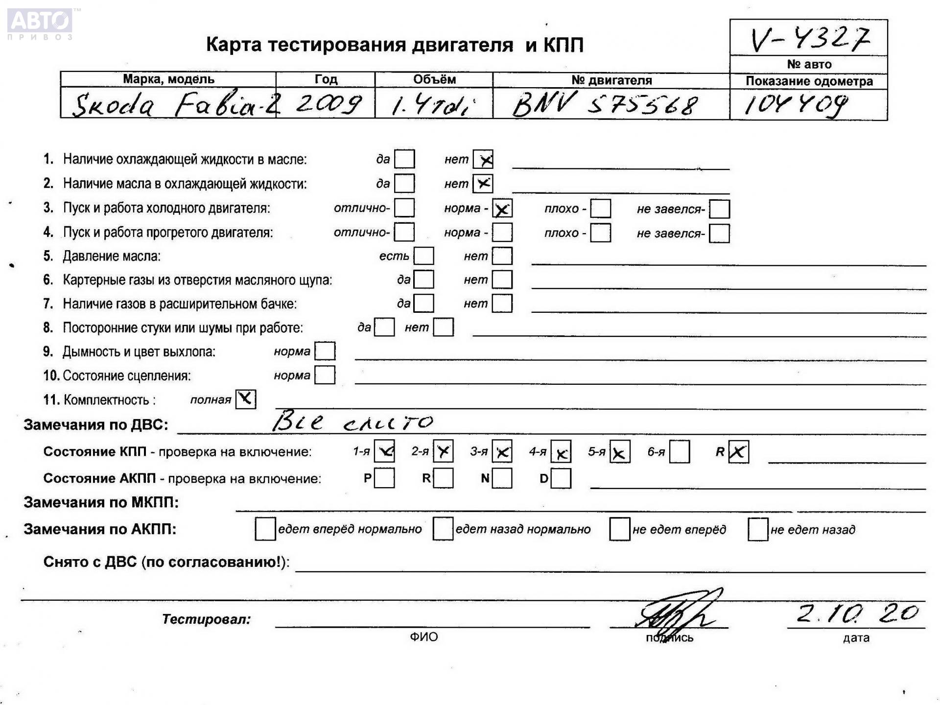 | Марка / Модель / Год: | Skoda Fabia mk2 (5J) 2009 |