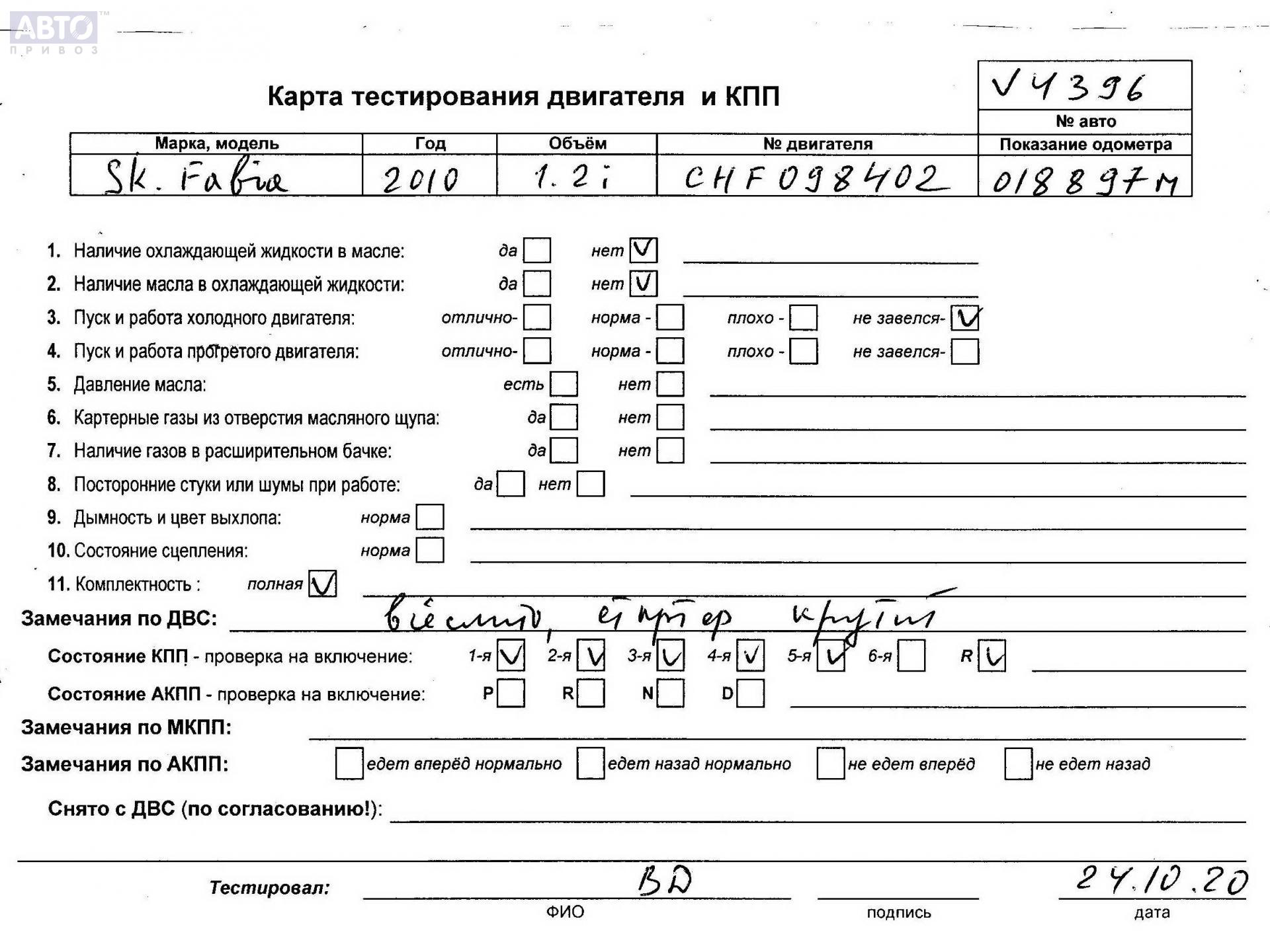 | Марка / Модель / Год: | Skoda Fabia mk2 (5J) 2010 |