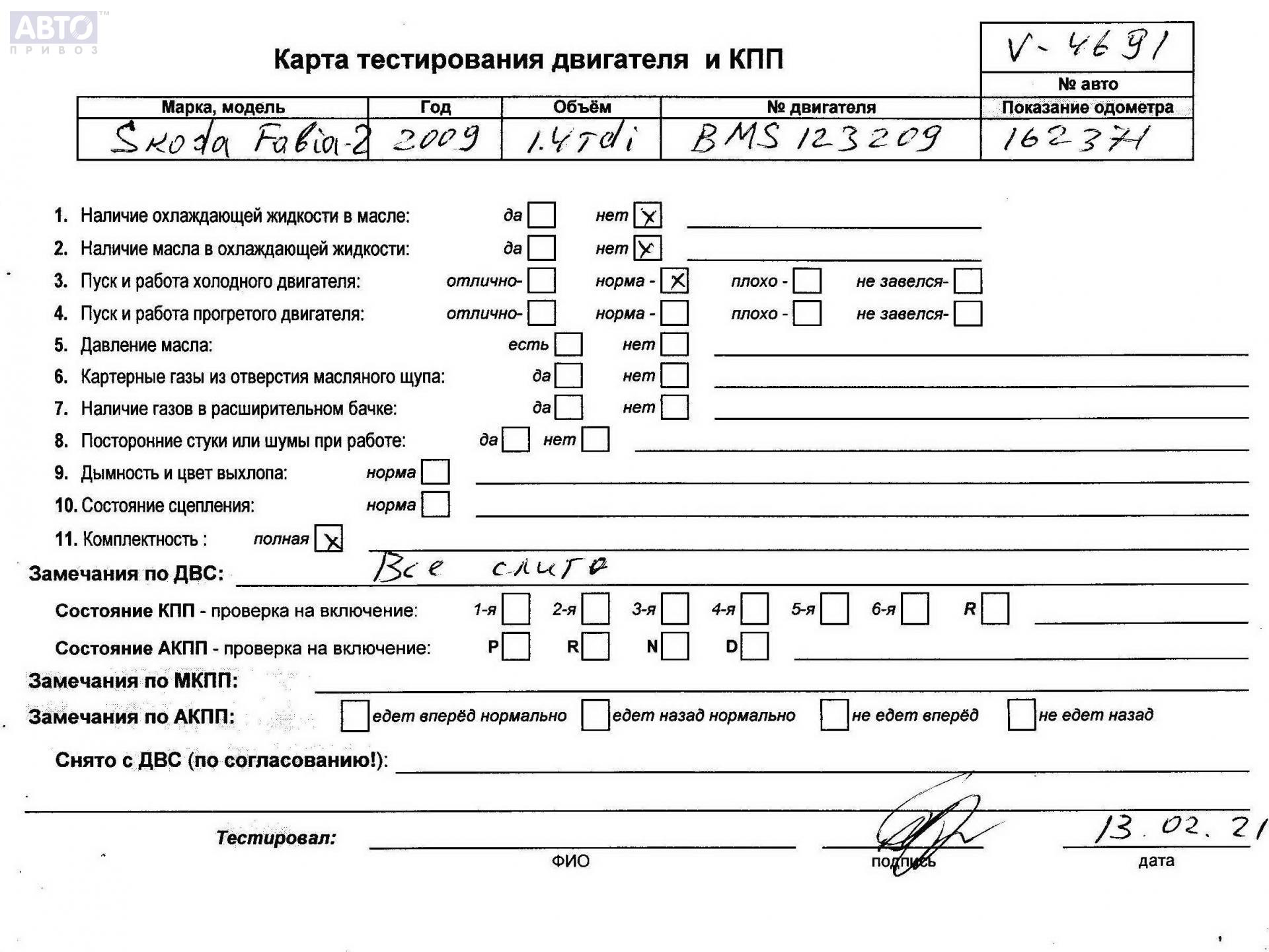 | Марка / Модель / Год: | Skoda Fabia mk2 (5J) 2009 |