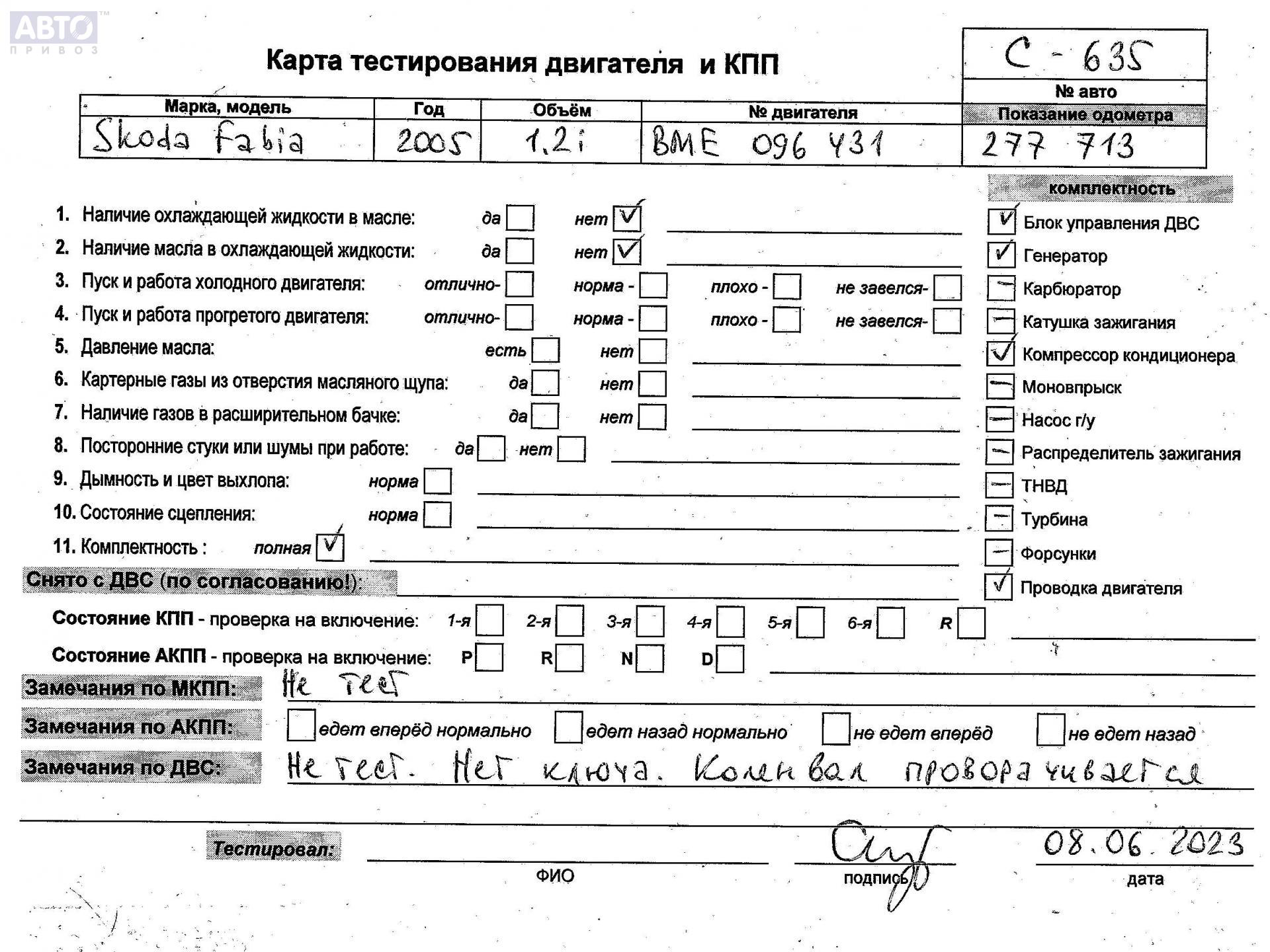 | Марка / Модель / Год: | Skoda Fabia mk1 (6Y) 2005 |