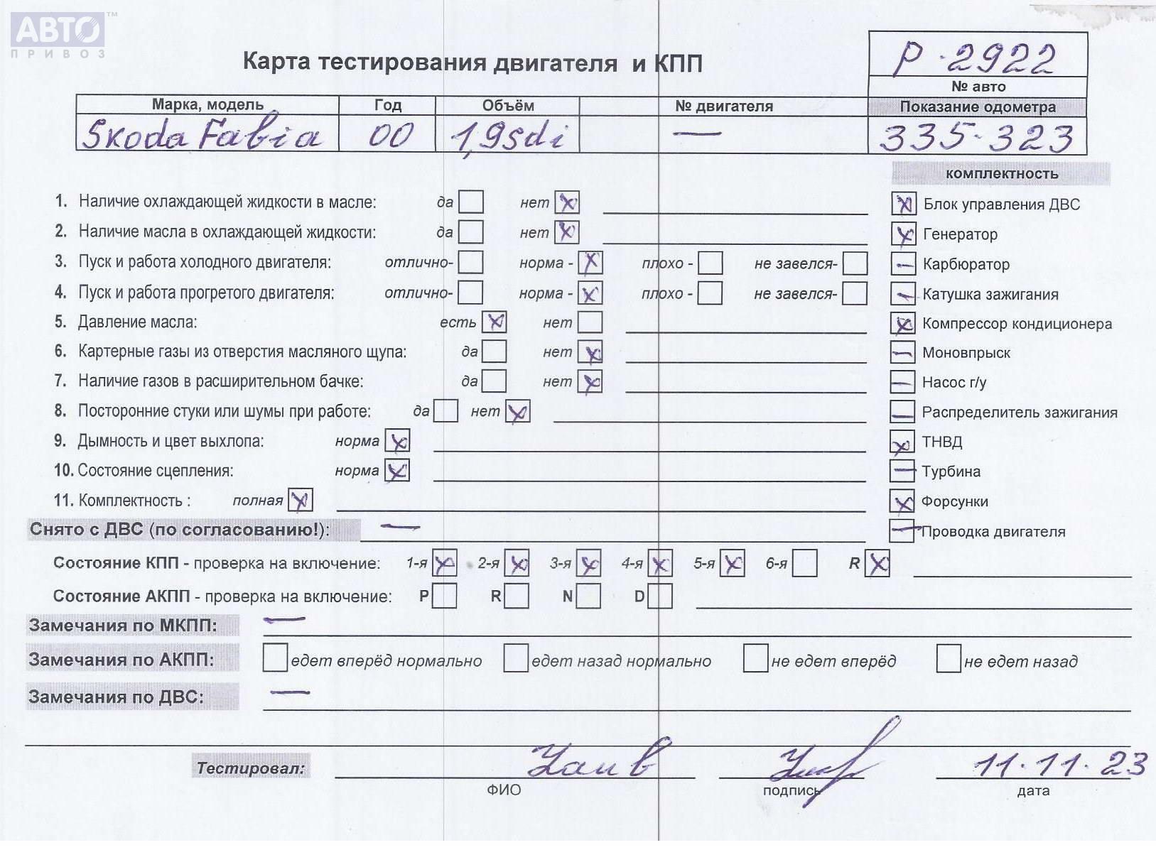 | Автомобиль / VIN: | P2922 TMBNF46Y913167434 |