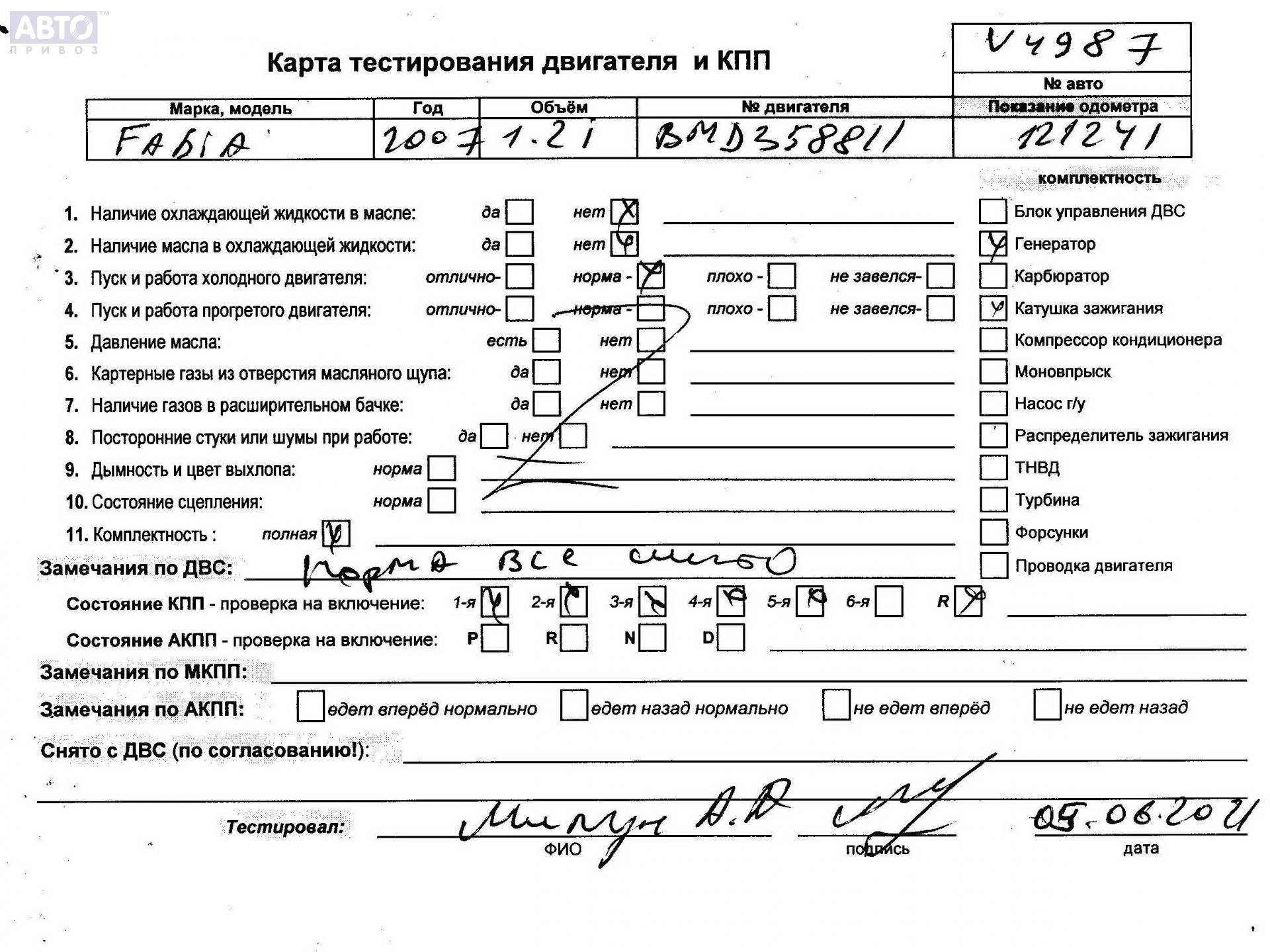 | Марка / Модель / Год: | Skoda Fabia mk1 (6Y) 2007 |