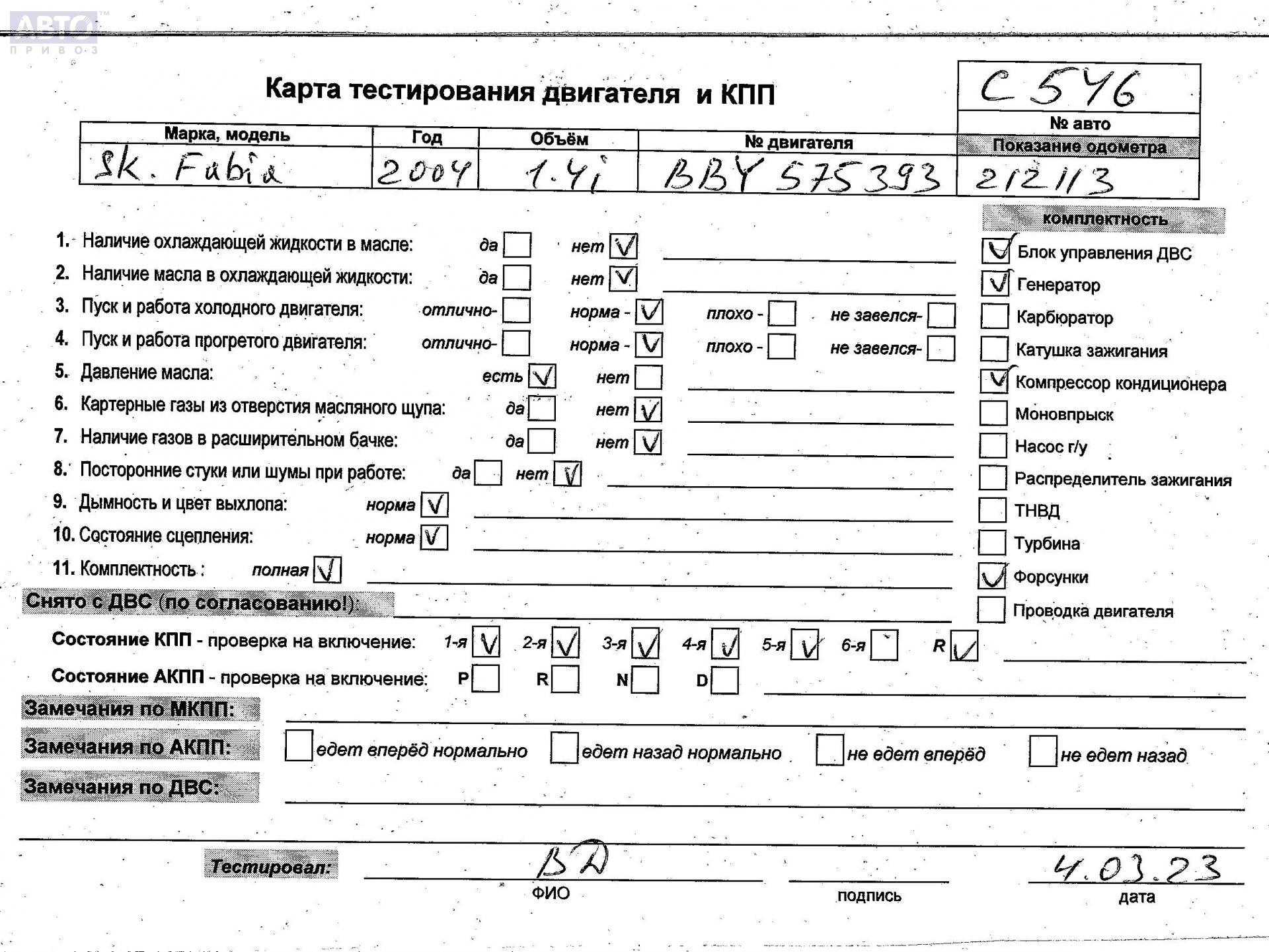 | Марка / Модель / Год: | Skoda Fabia mk1 (6Y) 2004 |