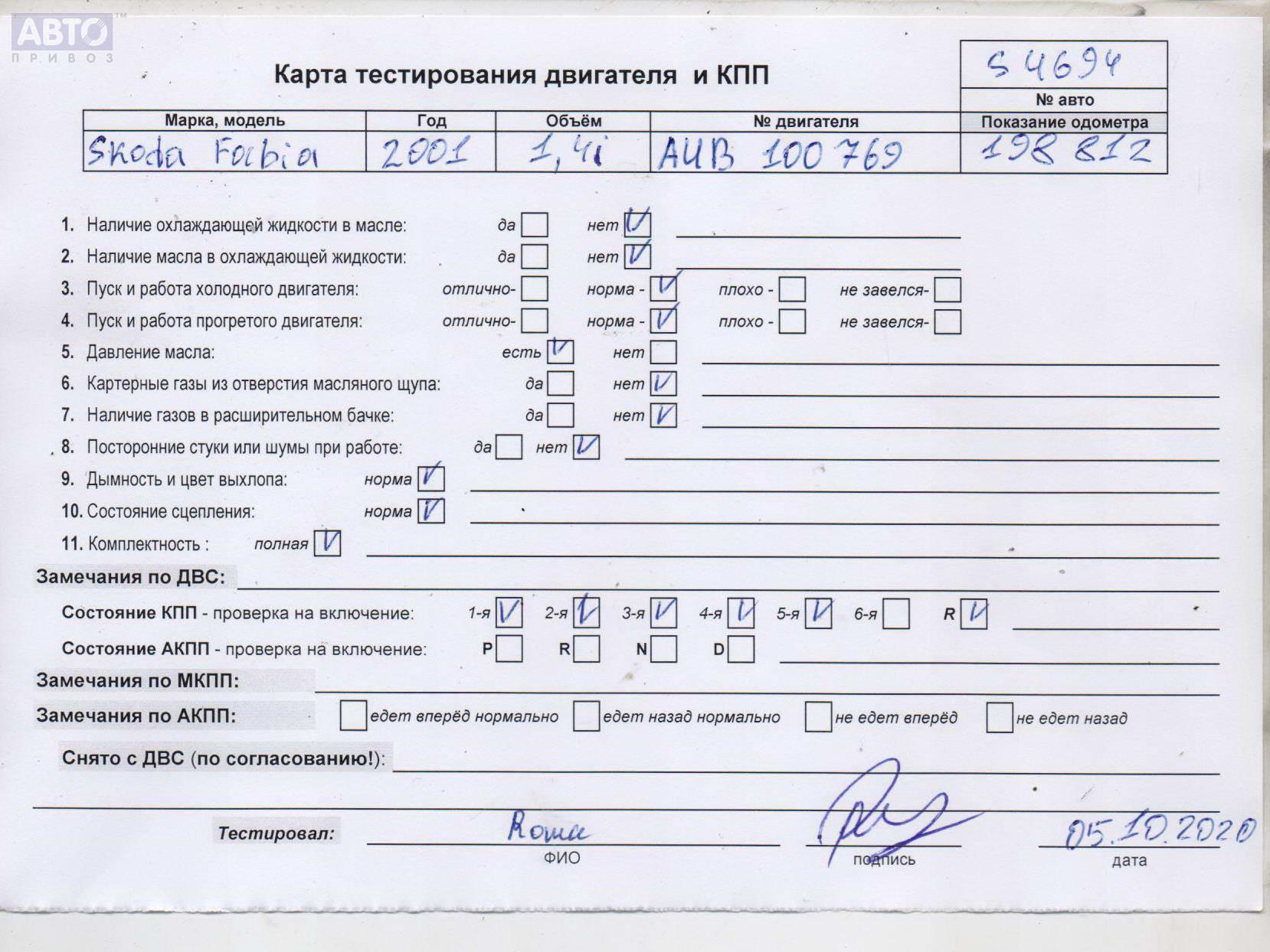 | Автомобиль / VIN: | S4694 TMBHD26Y723294742 |