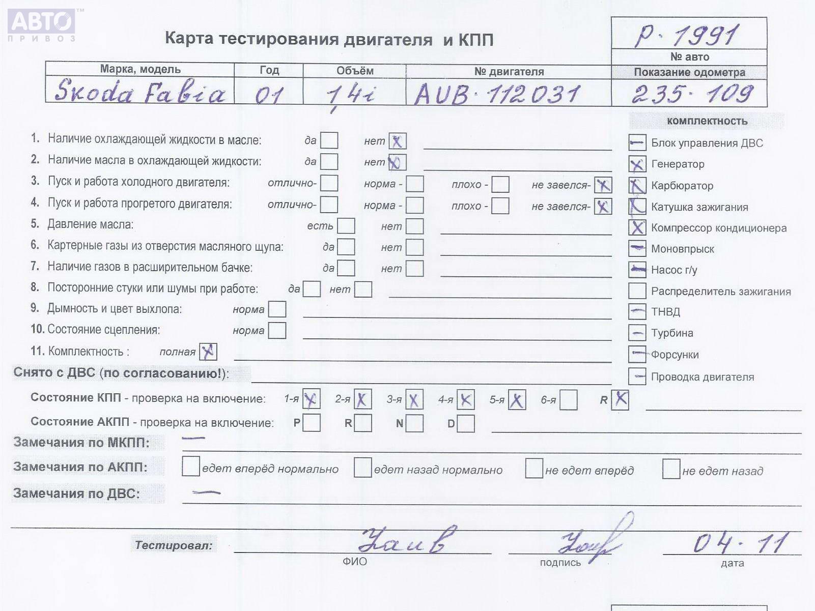 | Марка / Модель / Год: | Skoda Fabia mk1 (6Y) 2001 |