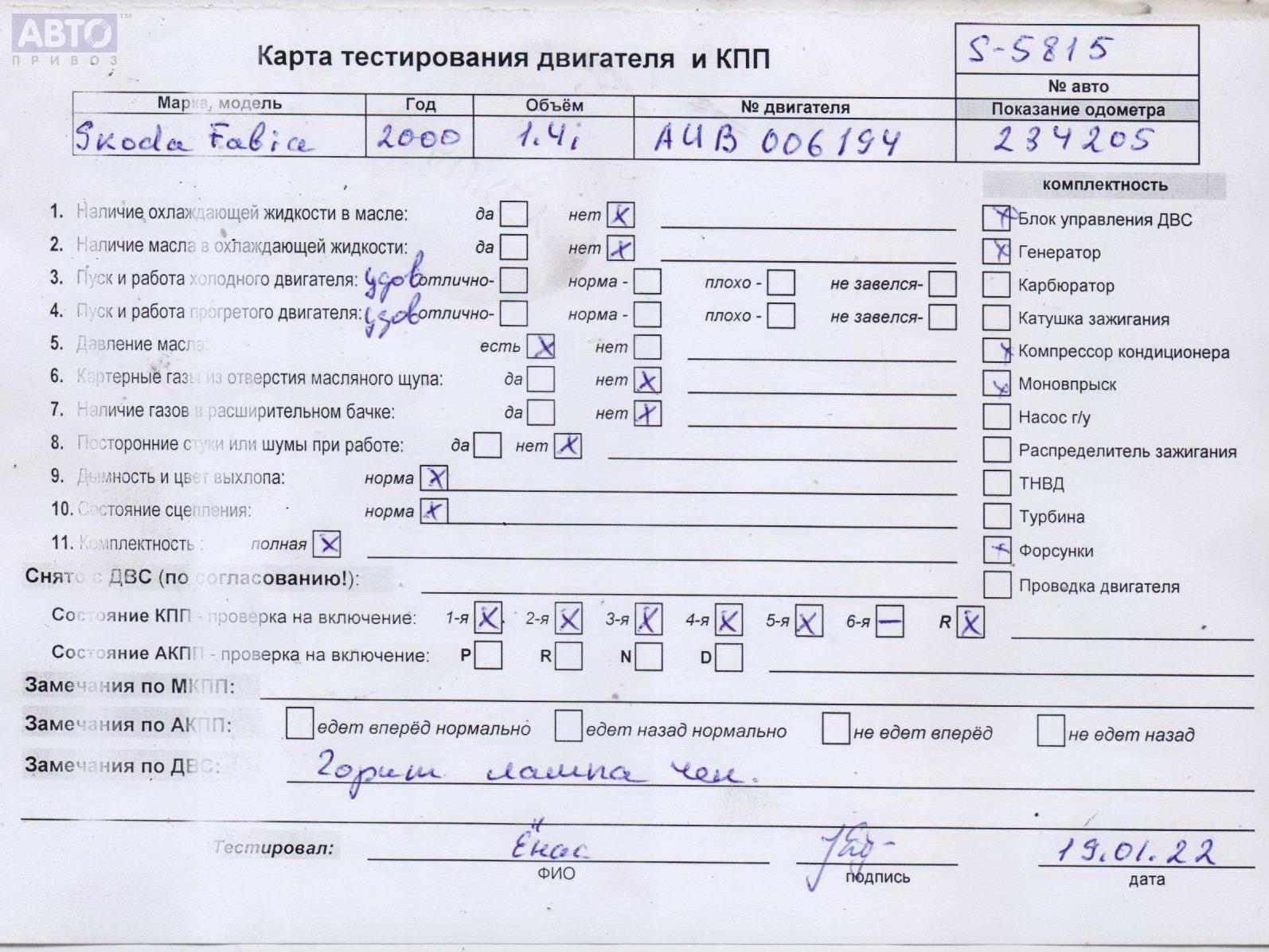 | Автомобиль / VIN: | S5815 TMBMD26Y0Y3026039 |