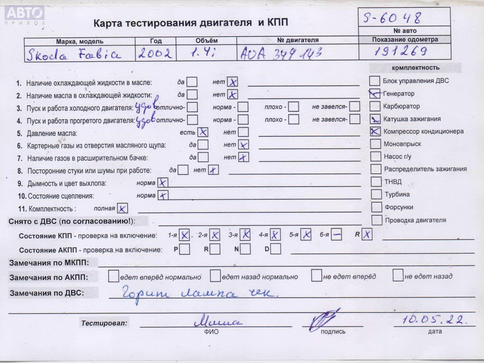 | Автомобиль / VIN: | S6048 TMBHC26Y423503213 |