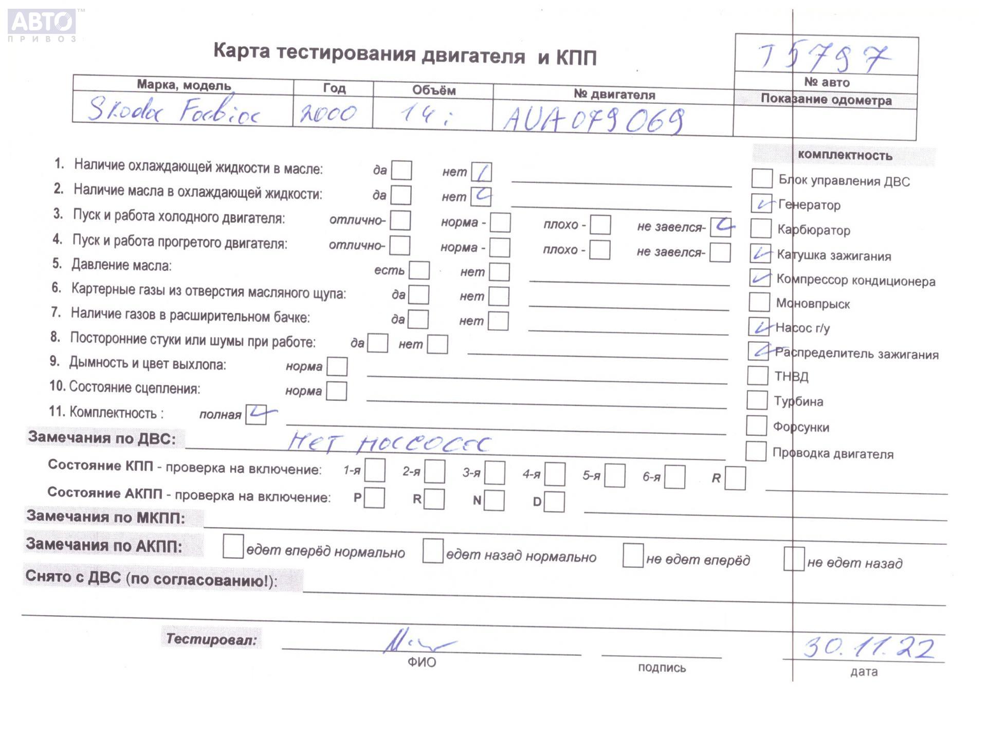 | Марка / Модель / Год: | Skoda Fabia mk1 (6Y) 2000 |