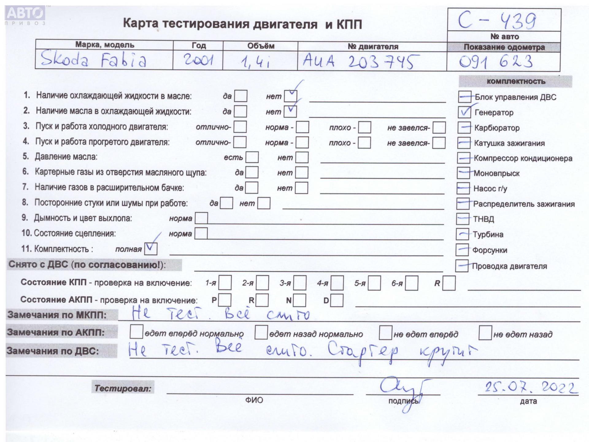 | Марка / Модель / Год: | Skoda Fabia mk1 (6Y) 2001 |