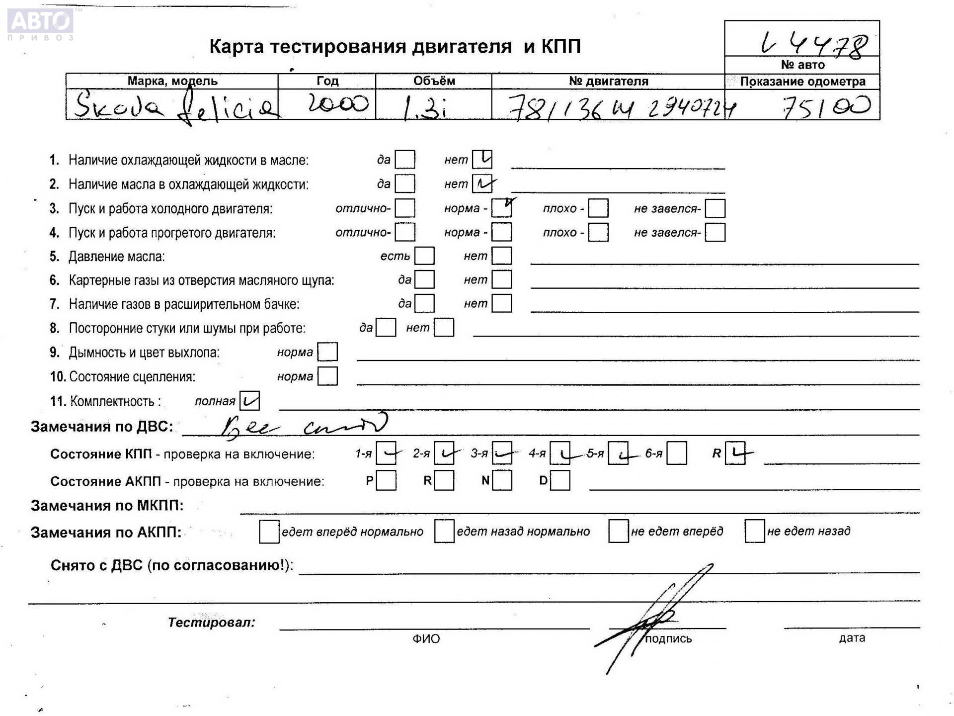 | Автомобиль / VIN: | V4478 TMBEFF613X0167031 |