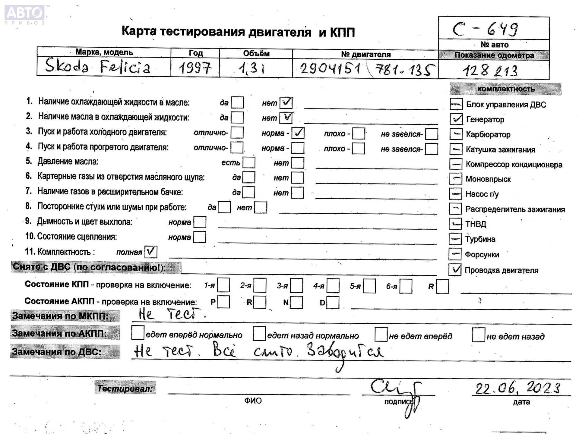 | Автомобиль / VIN: | C0649 TMBEEF613X0144498 |
