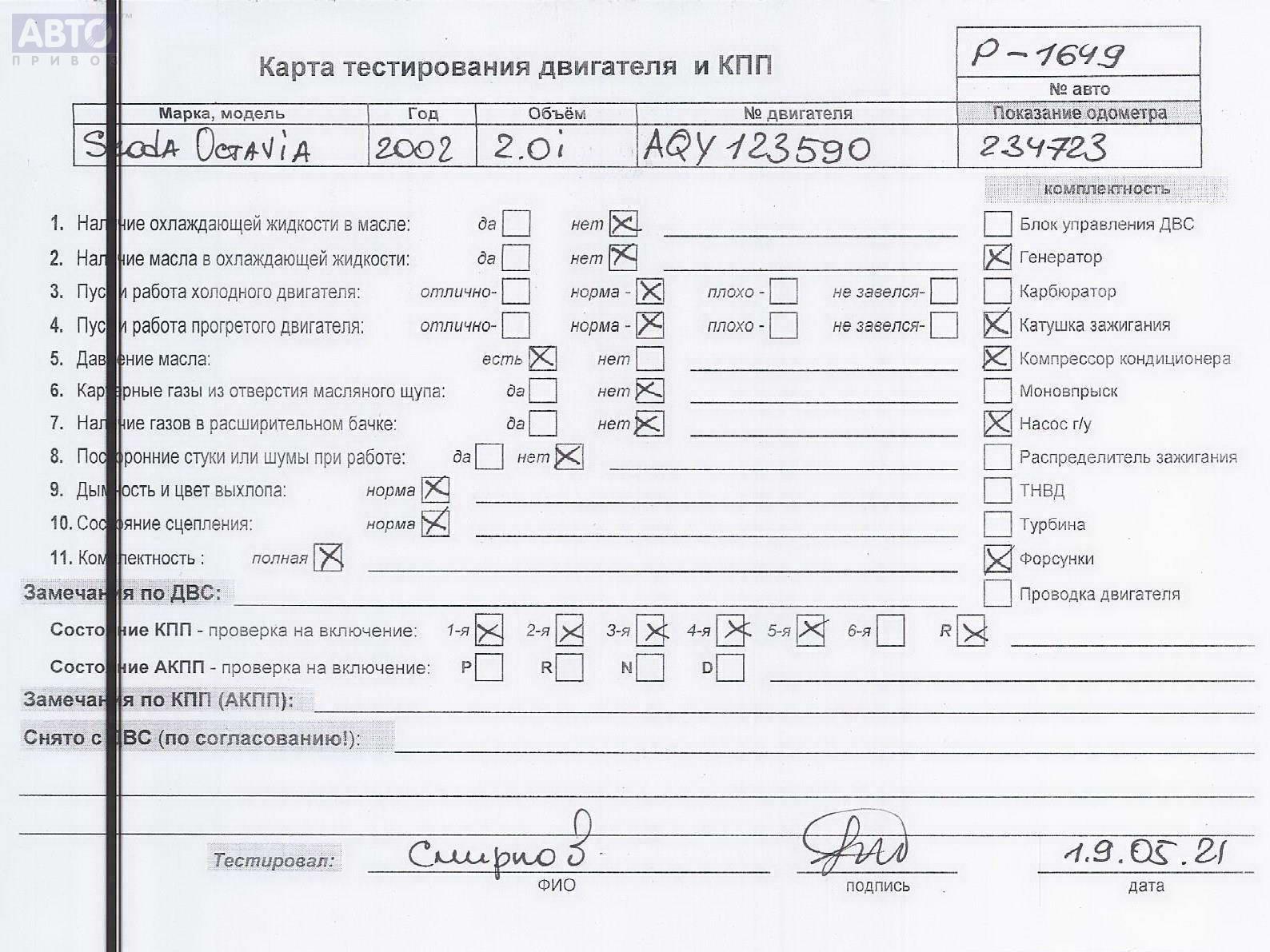 | Автомобиль / VIN: | P1649 TMBHE21U022624552 |