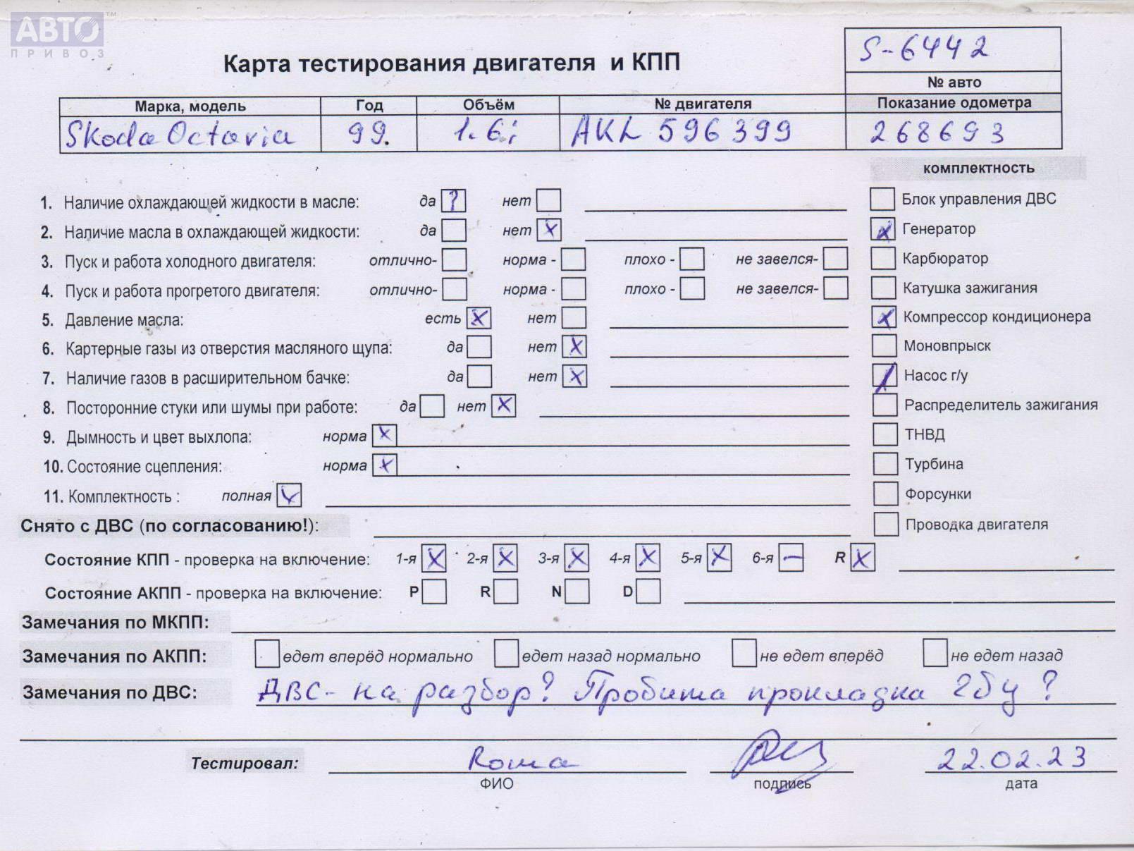 | Автомобиль / VIN: | S6442 TMBGK21UXY2300165 |