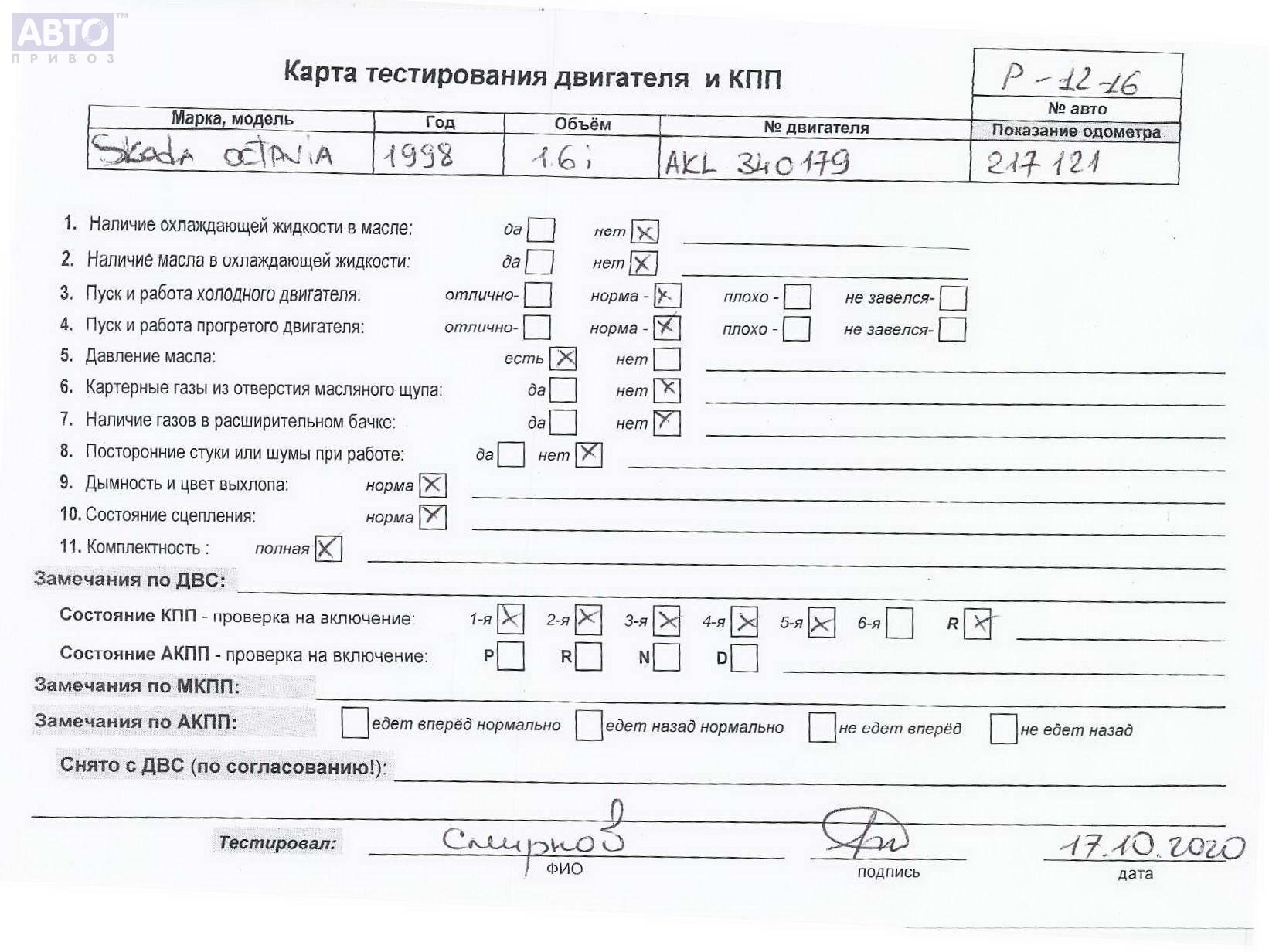 | Автомобиль / VIN: | P1216 TMBZZZ1U4W2112199 |