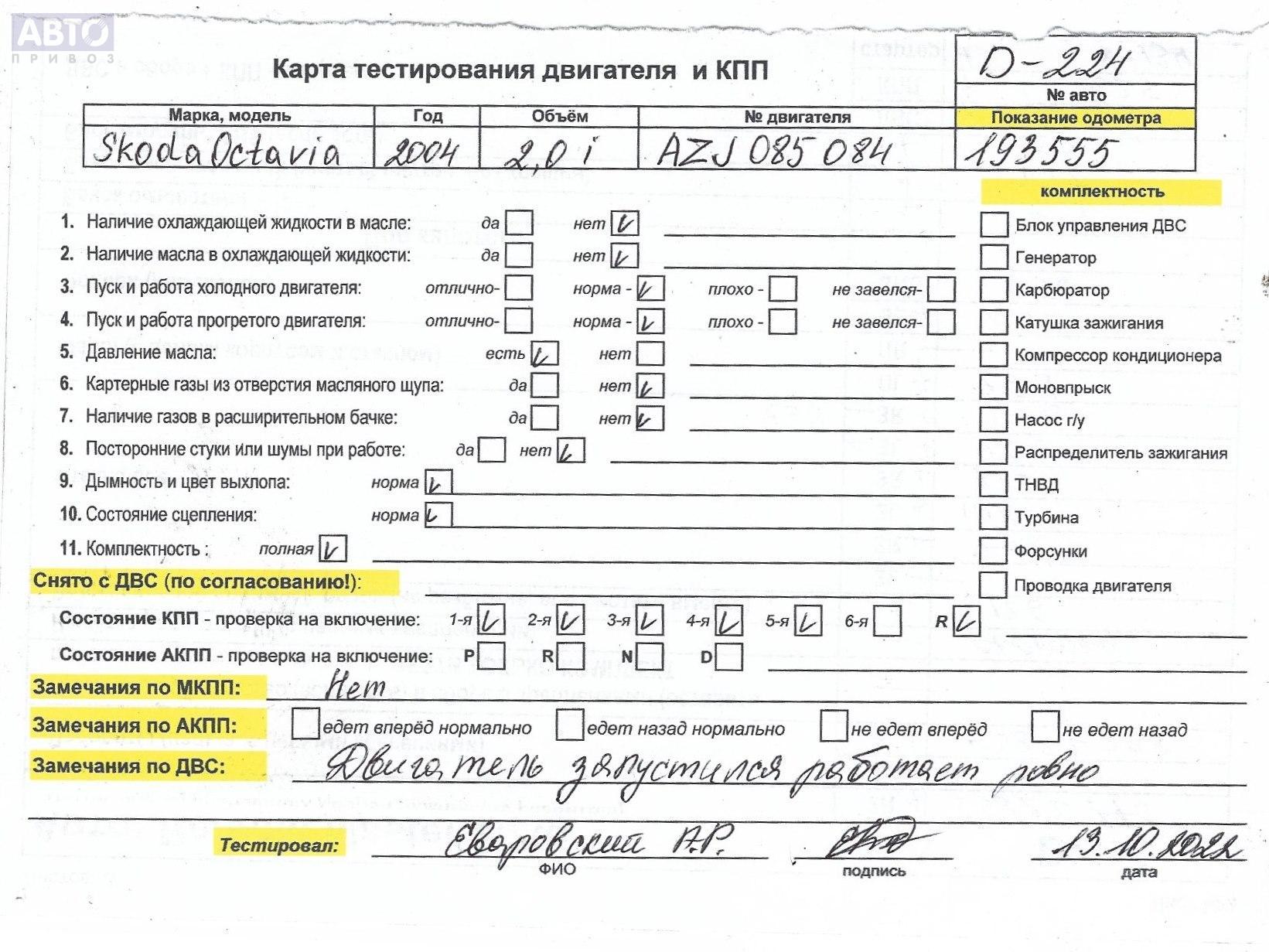 | Автомобиль / VIN: | D0224 TMBHE21U742941232 |