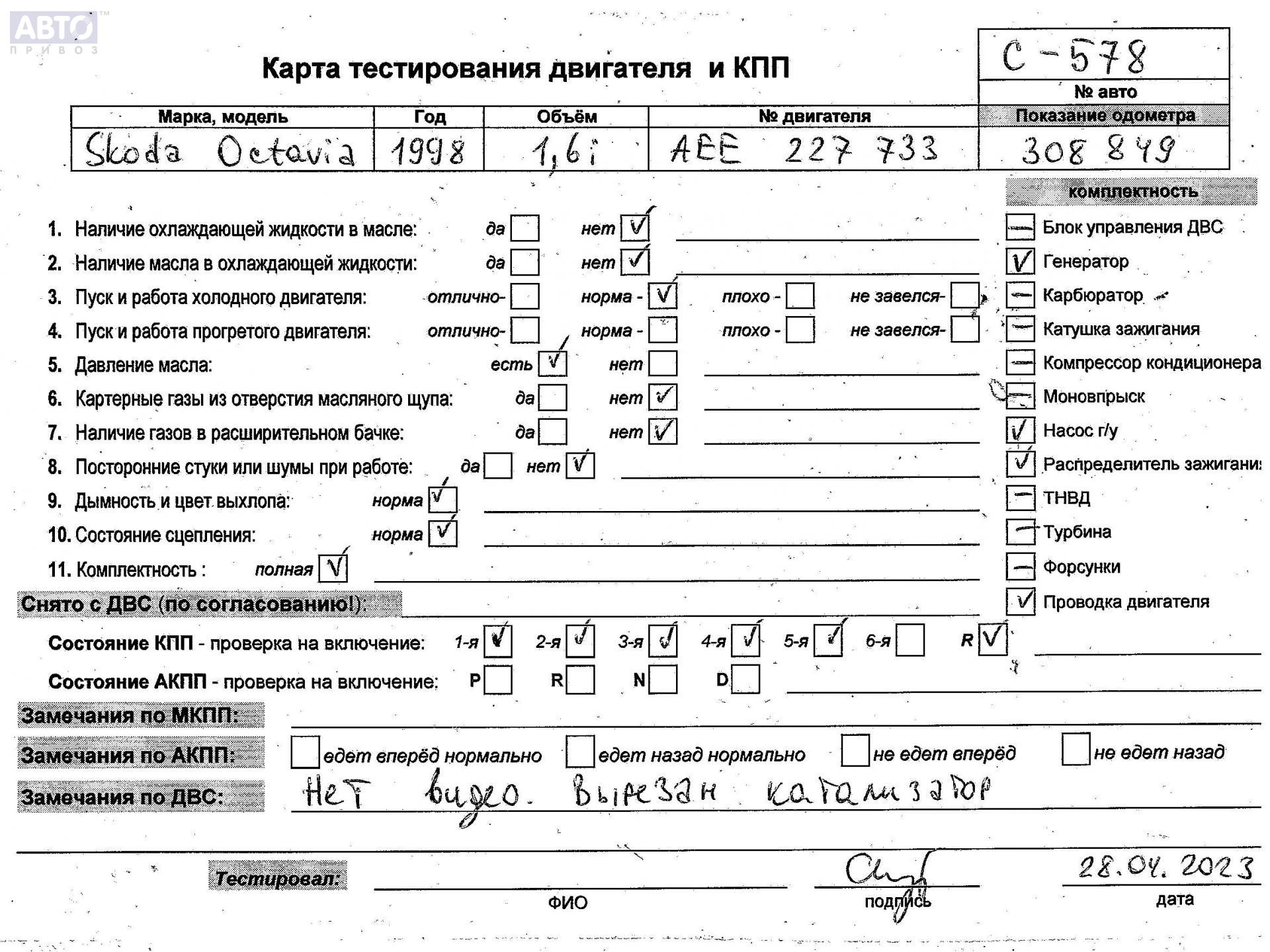 | Марка / Модель / Год: | Skoda Octavia mk1 (A4 1U) 1996-2010 1998 |
