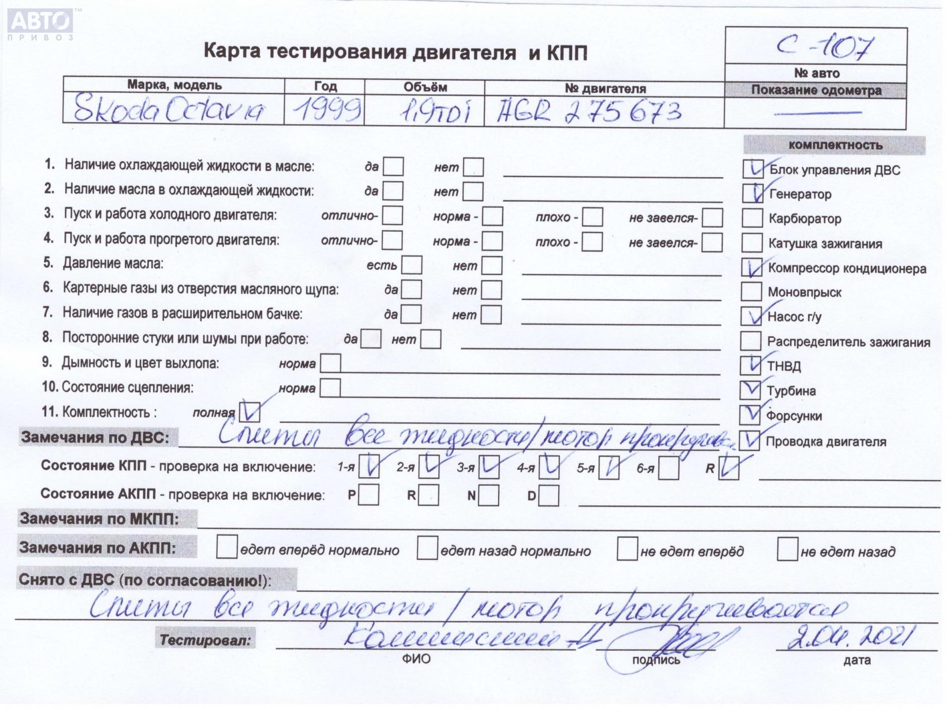 | Автомобиль / VIN: | C0107 TMBBG21U1Y2326522 |