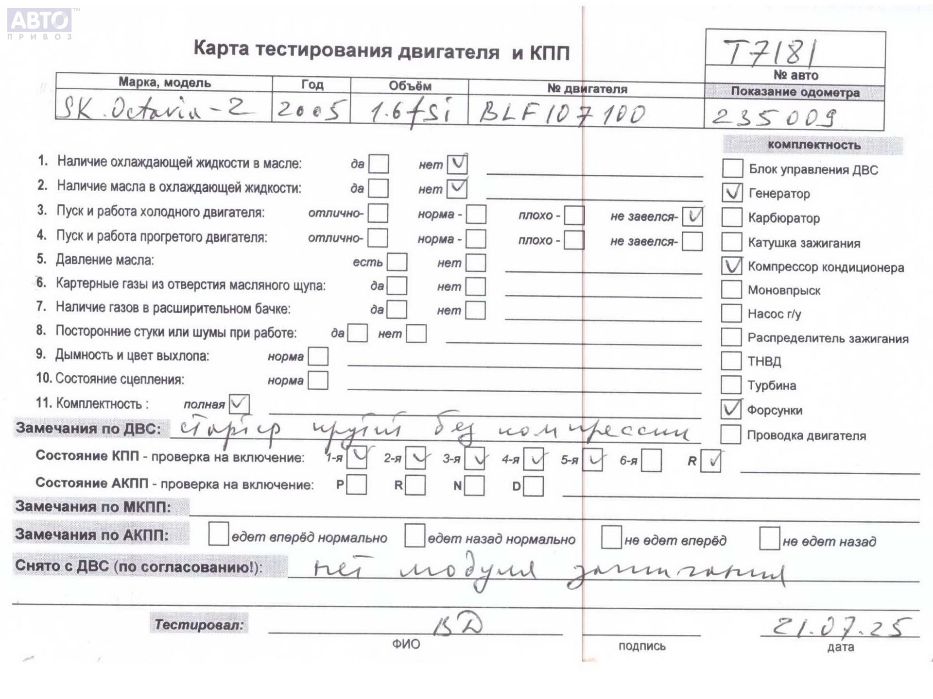 | Автомобиль / VIN: | T7181 TMBGB61Z352100002 |
