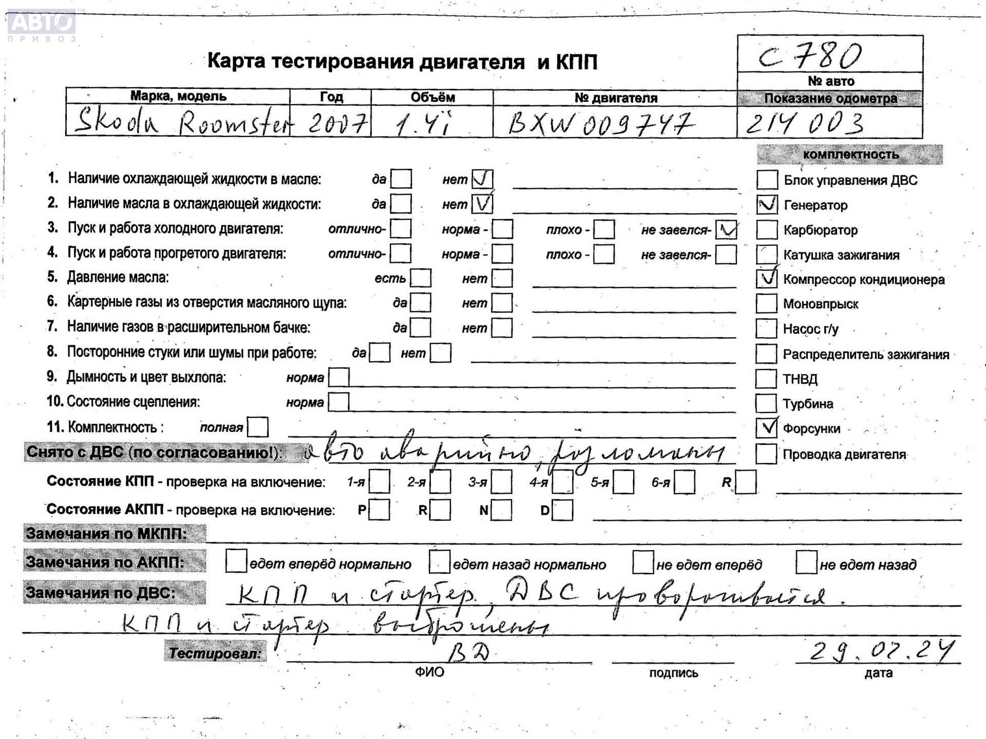 | Марка / Модель / Год: | Skoda Roomster 2007 |