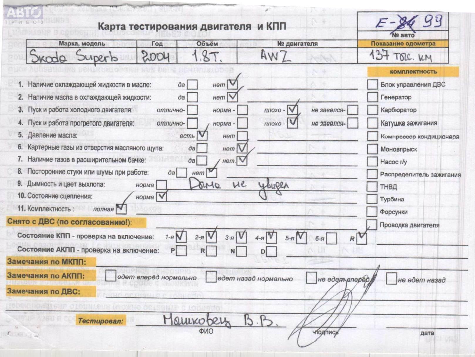 | Марка / Модель / Год: | Skoda Superb mk1 (B5) 2002 |