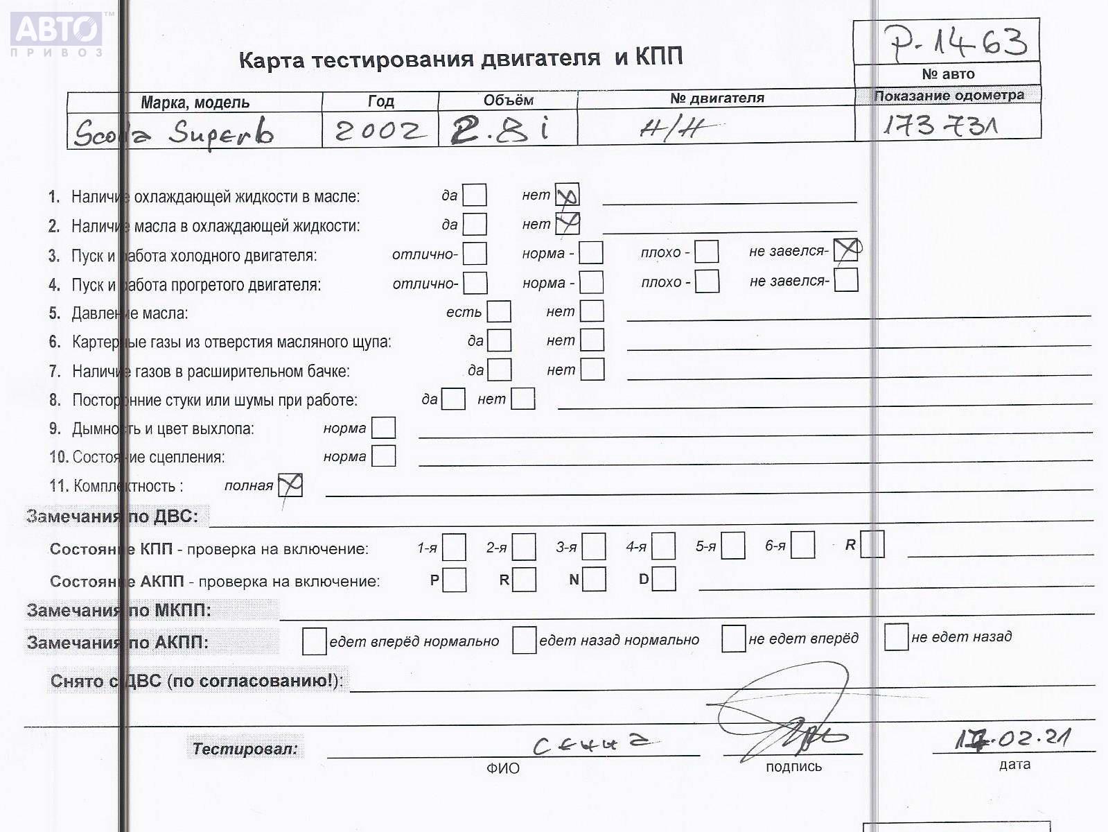 | Марка / Модель / Год: | Skoda Superb mk1 (B5) 2002 |