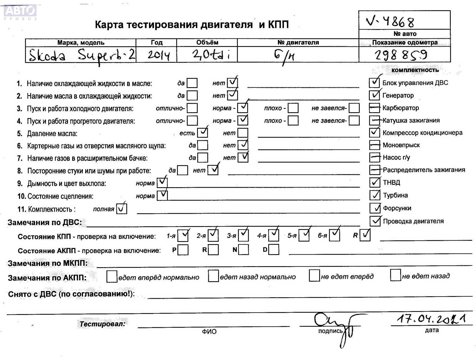 | Марка / Модель / Год: | Skoda Superb mk2 (B6) 2014 |