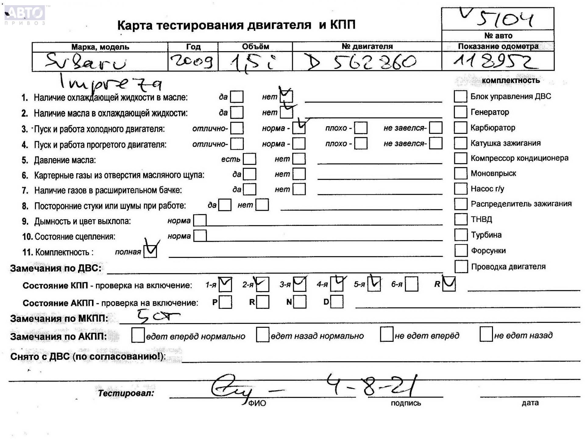 | Марка / Модель / Год: | Subaru Impreza 2008 |