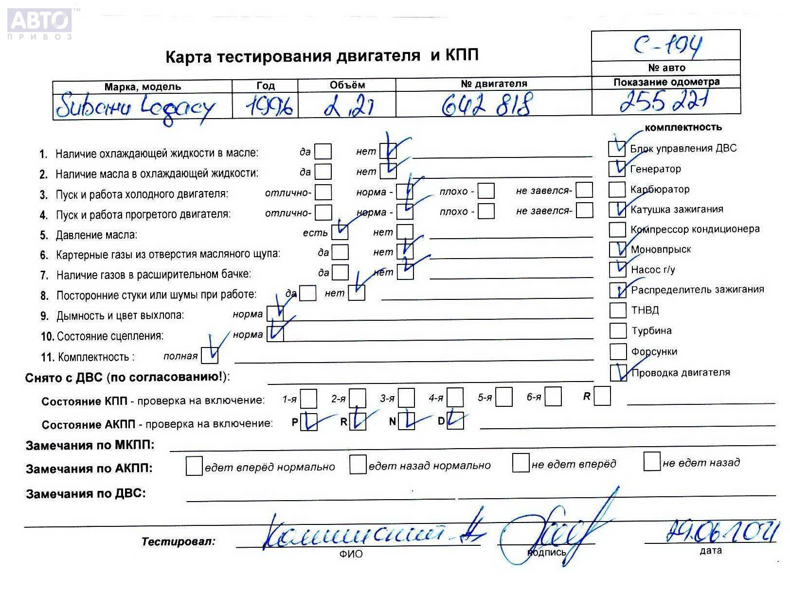 | Марка / Модель / Год: | Subaru Legacy 1996 |