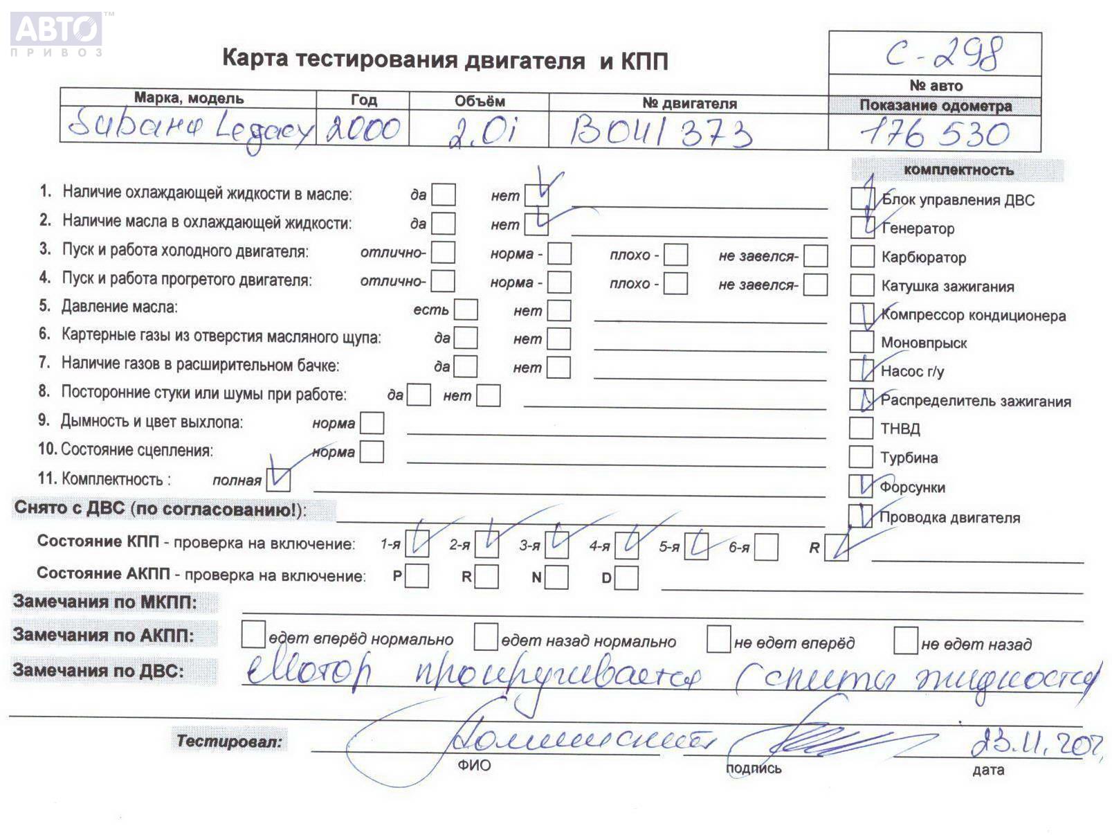 | Марка / Модель / Год: | Subaru Legacy 2000 |