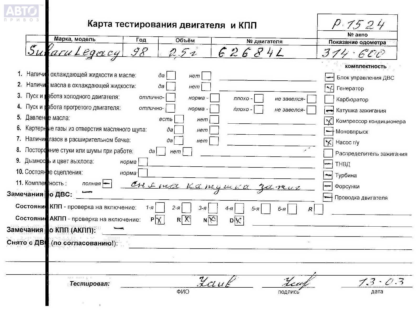 | Автомобиль / VIN: | P1524 JF1BH9LRAXG008212 |