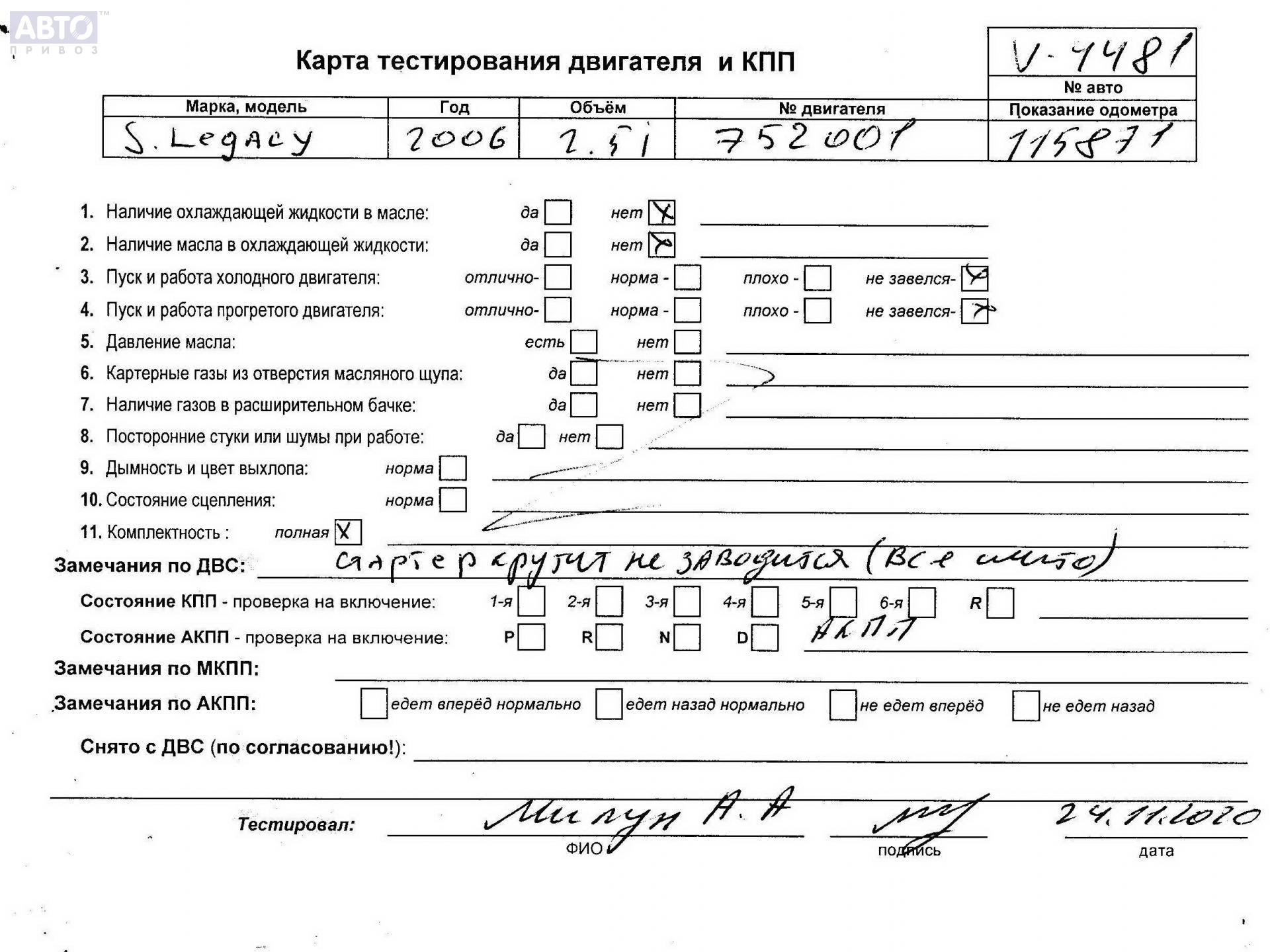 | Марка / Модель / Год: | Subaru Legacy 2006 |