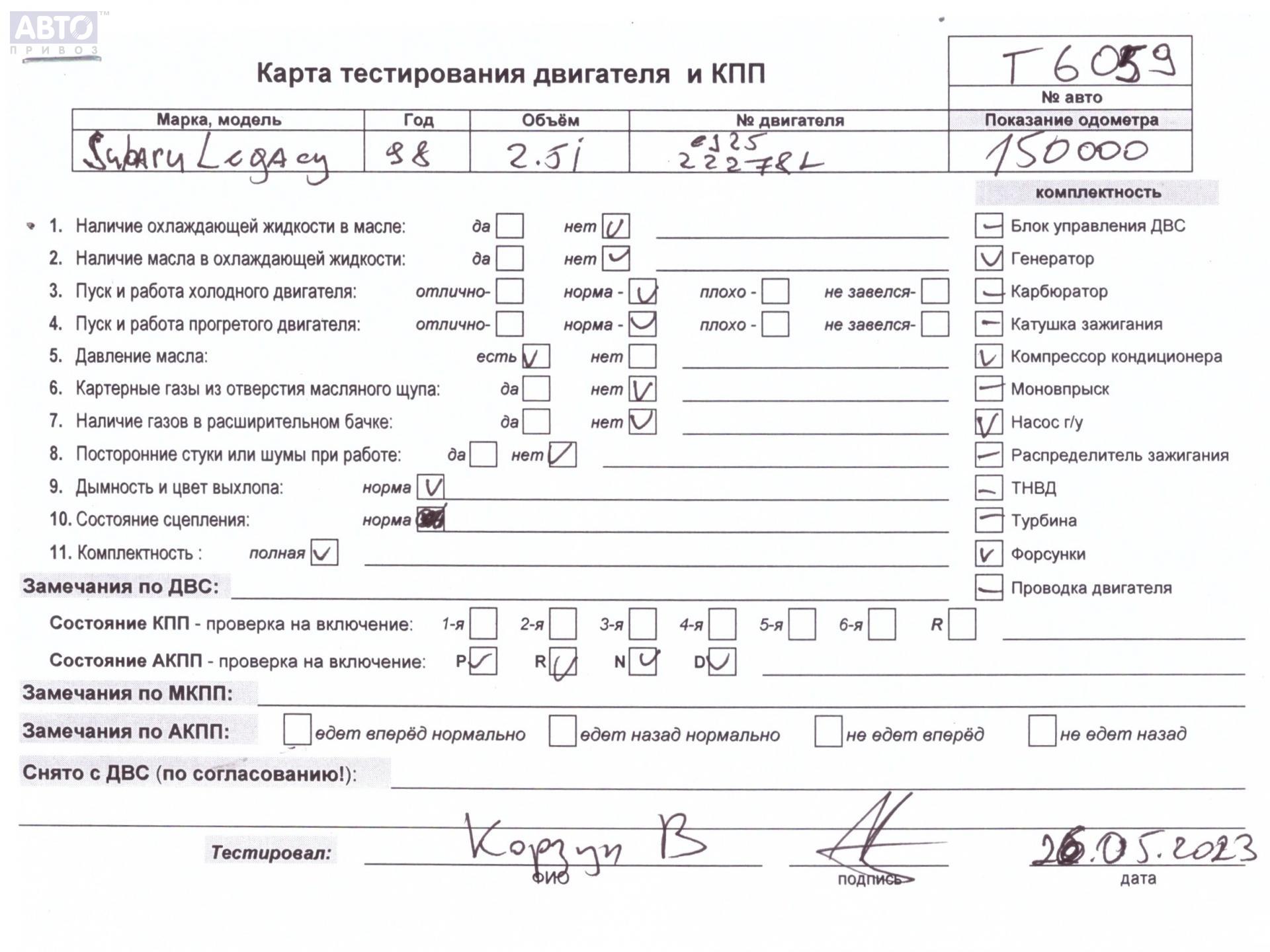 | Марка / Модель / Год: | Subaru Legacy 1998 |