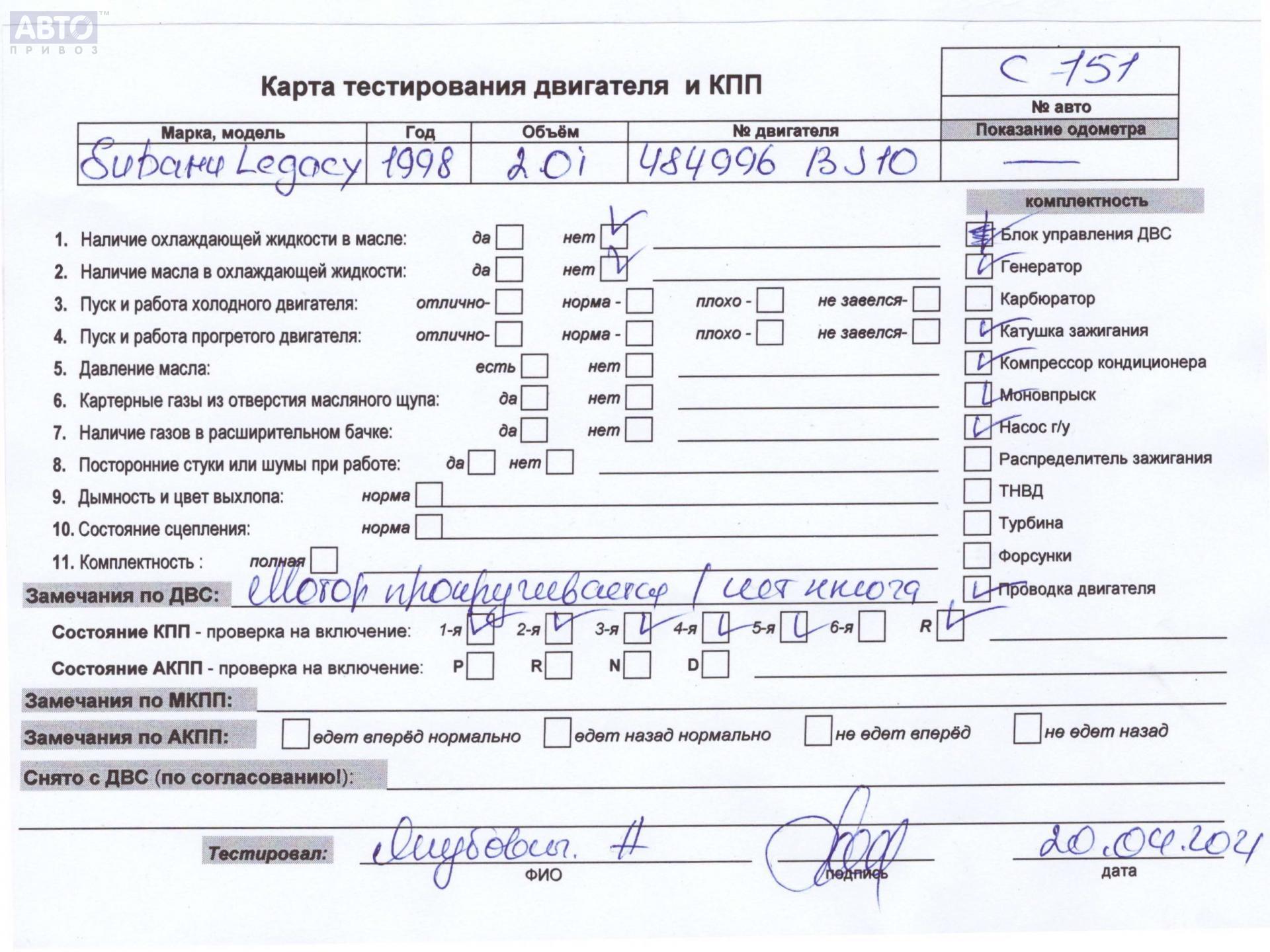 | Марка / Модель / Год: | Subaru Legacy 1999 |