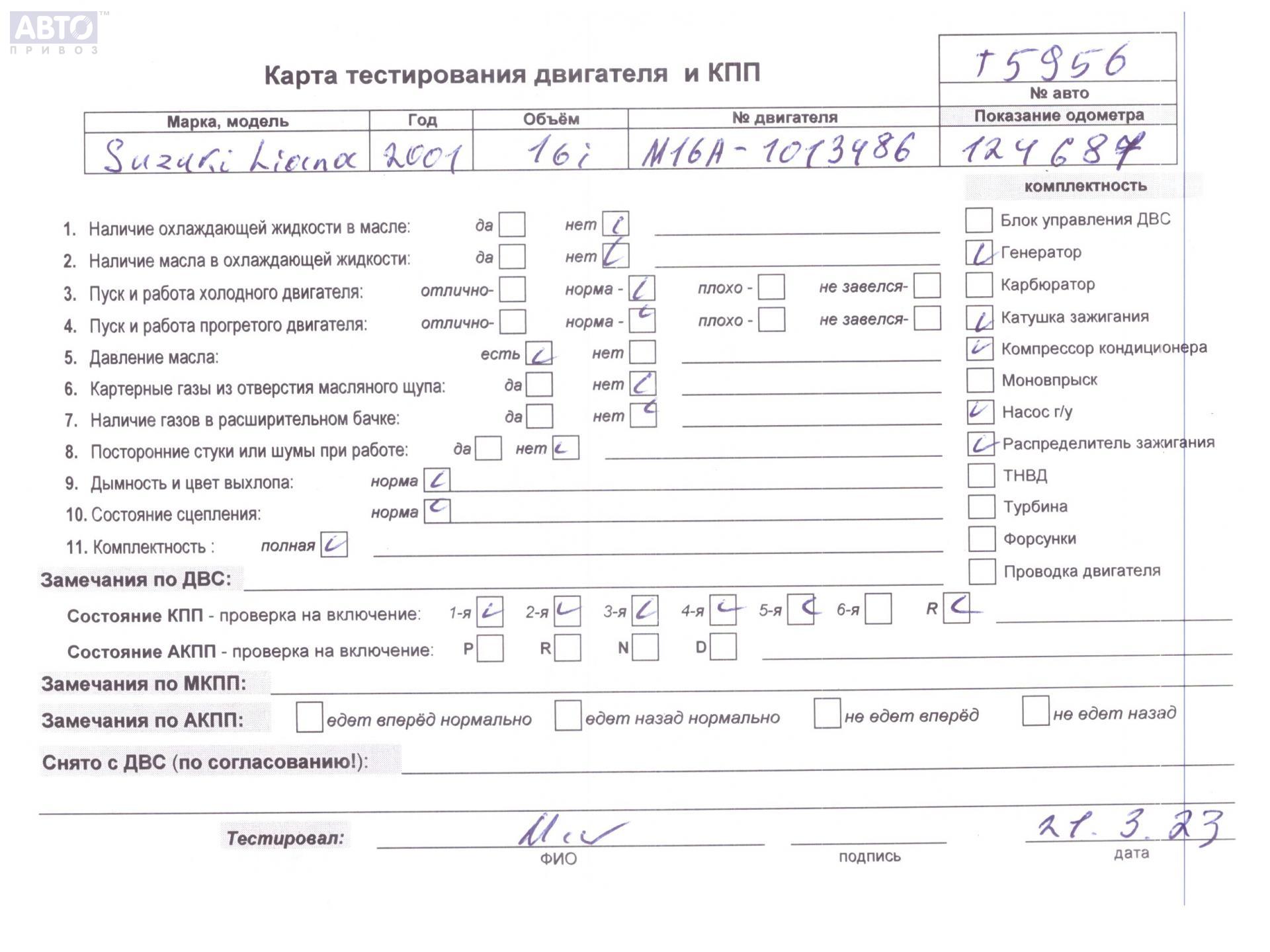| Марка / Модель / Год: | Suzuki Liana 2001 |