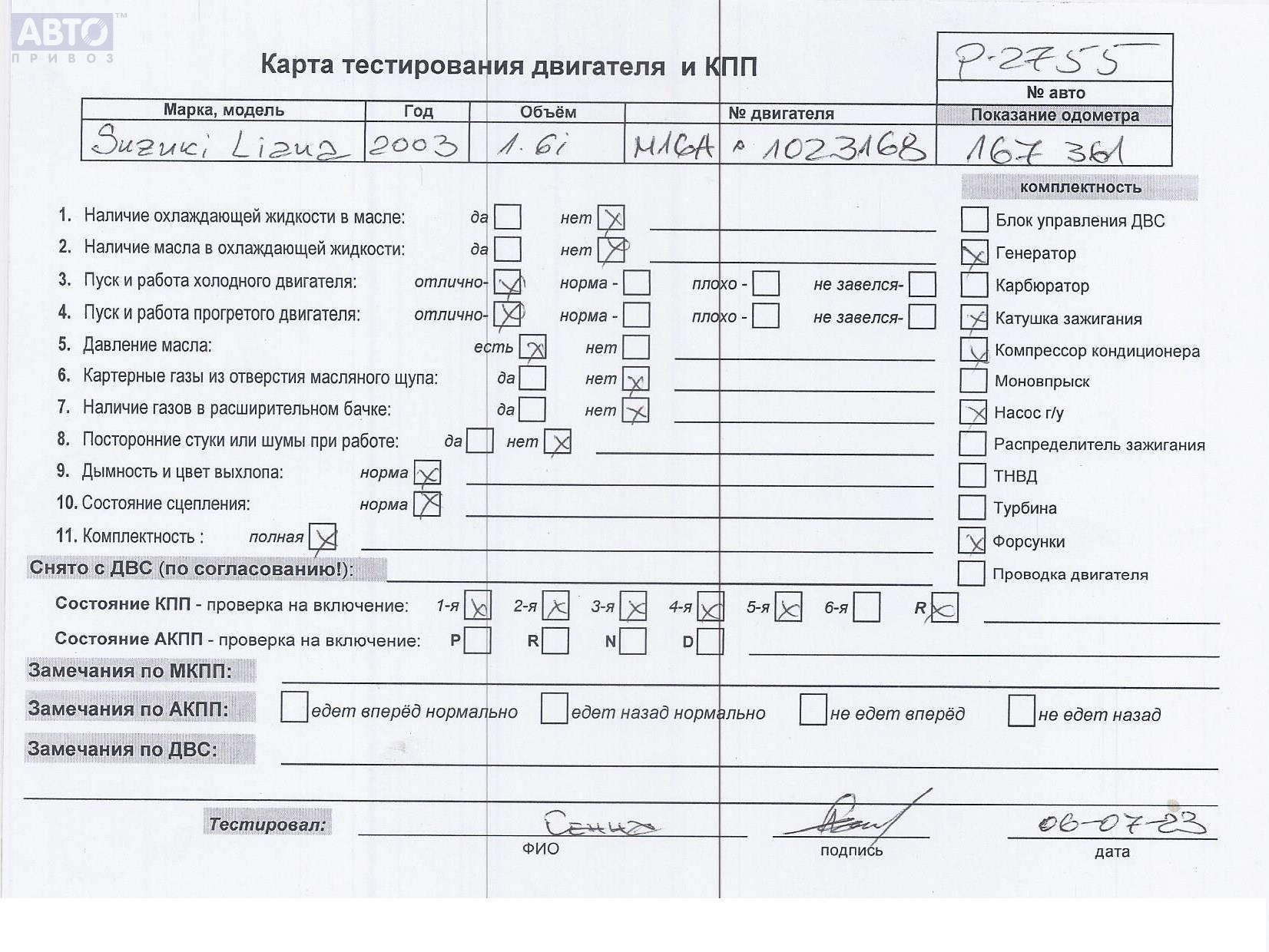 | Марка / Модель / Год: | Suzuki Liana 2003 |