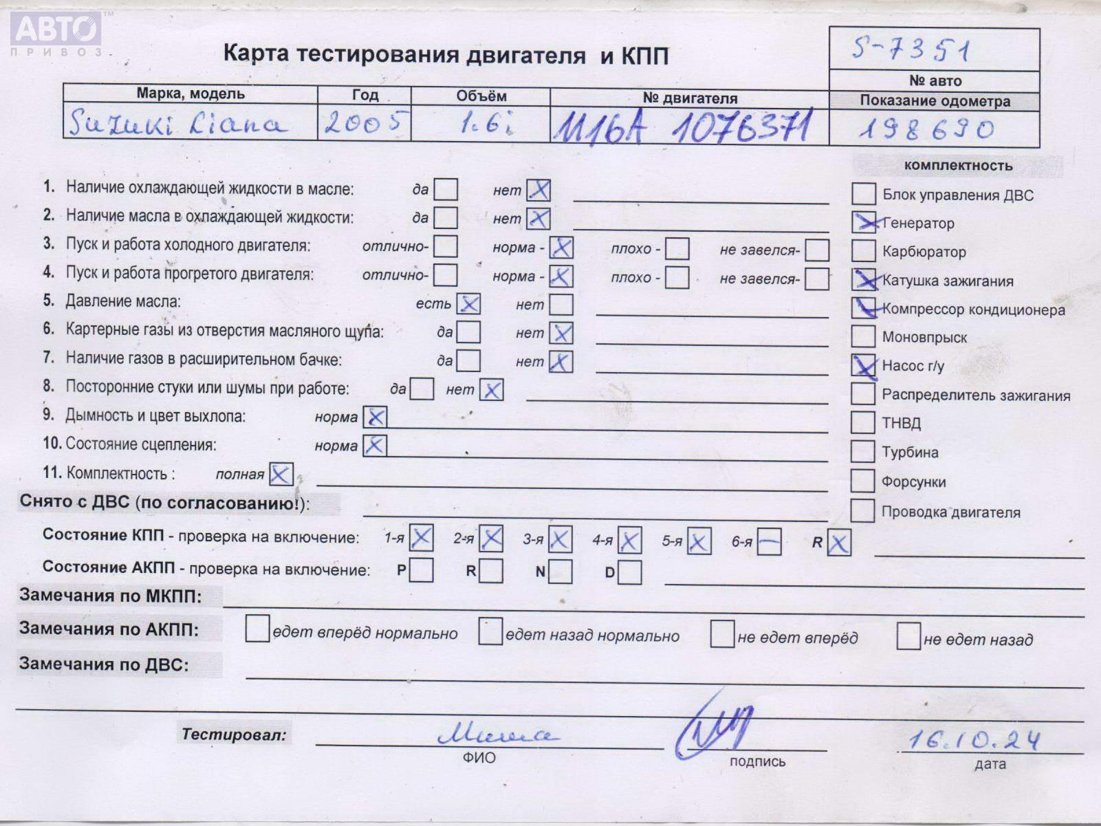 | Марка / Модель / Год: | Suzuki Liana 2005 |