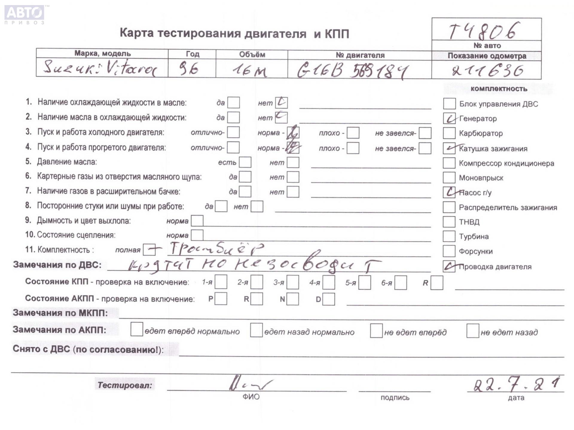 | Марка / Модель / Год: | Suzuki Vitara (1988-2006) 1996 |
