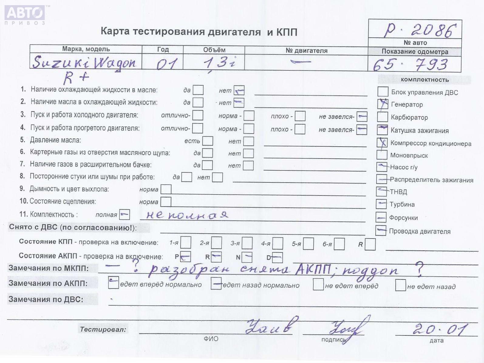 | Марка / Модель / Год: | Suzuki Wagon R+ 2001 |