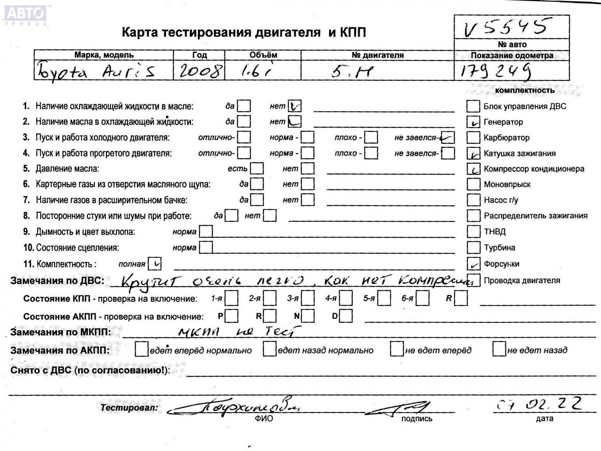 | Марка / Модель / Год: | Toyota Auris 2008 |