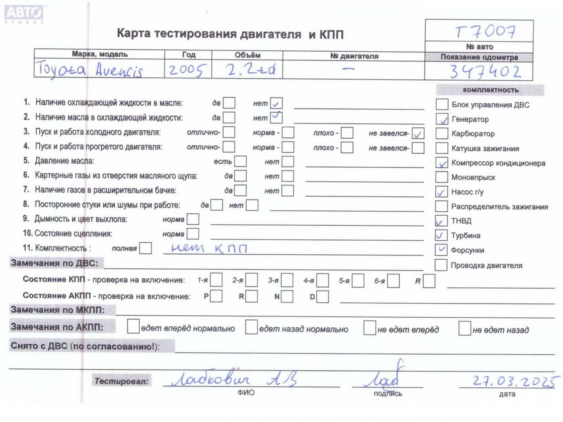 | Марка / Модель / Год: | Toyota Avensis (2003-2008) 2006 |
