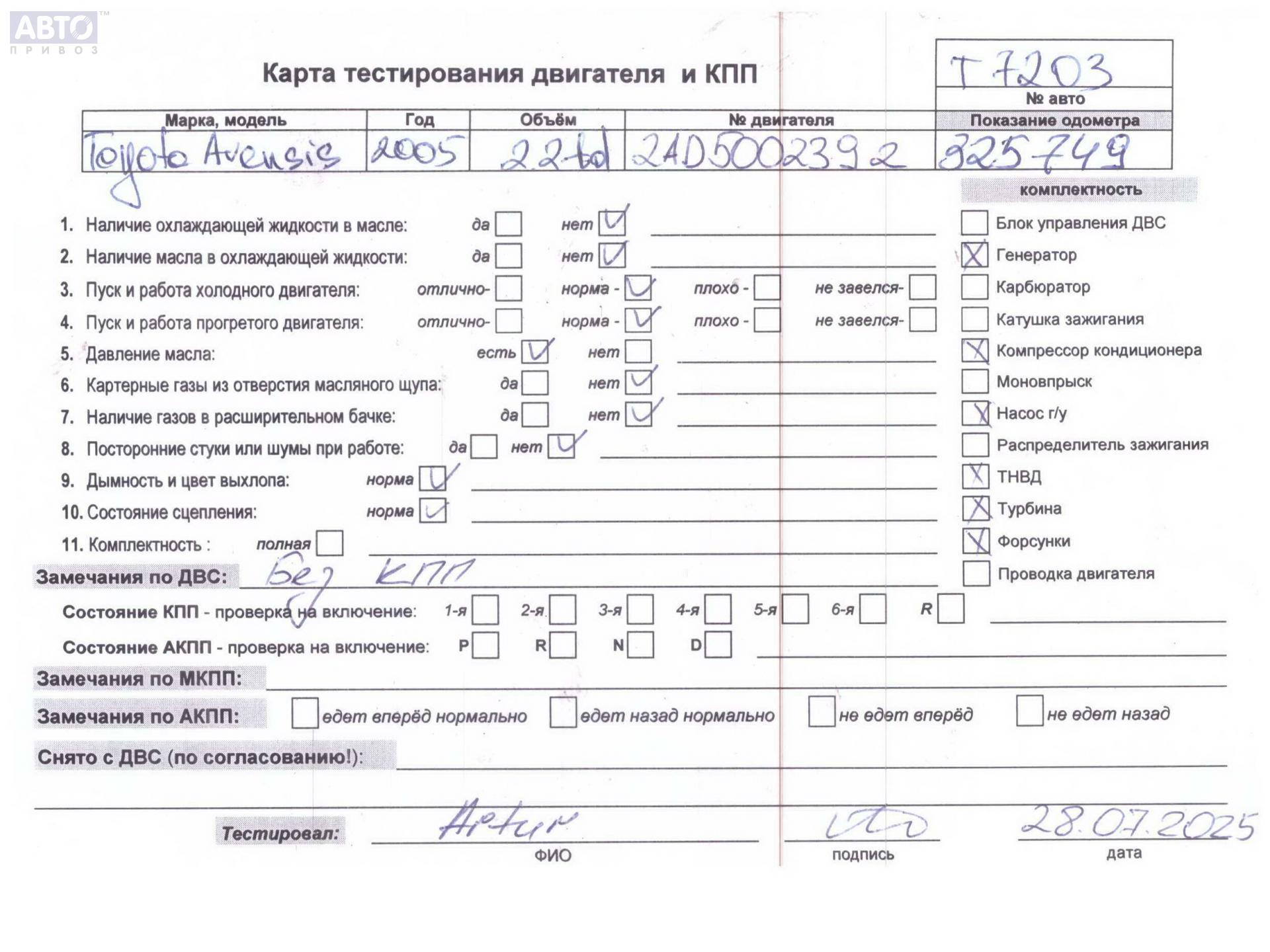 | Марка / Модель / Год: | Toyota Avensis (2003-2008) 2005 |