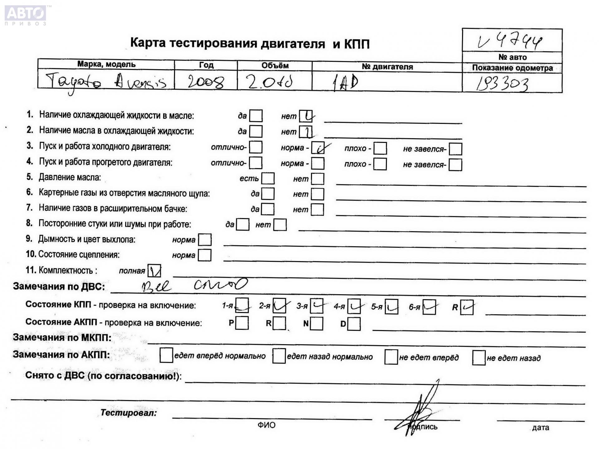 | Марка / Модель / Год: | Toyota Avensis (2003-2008) 2008 |