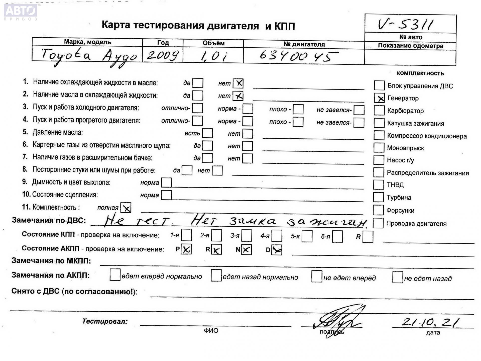 | Марка / Модель / Год: | Toyota Aygo 2009 |