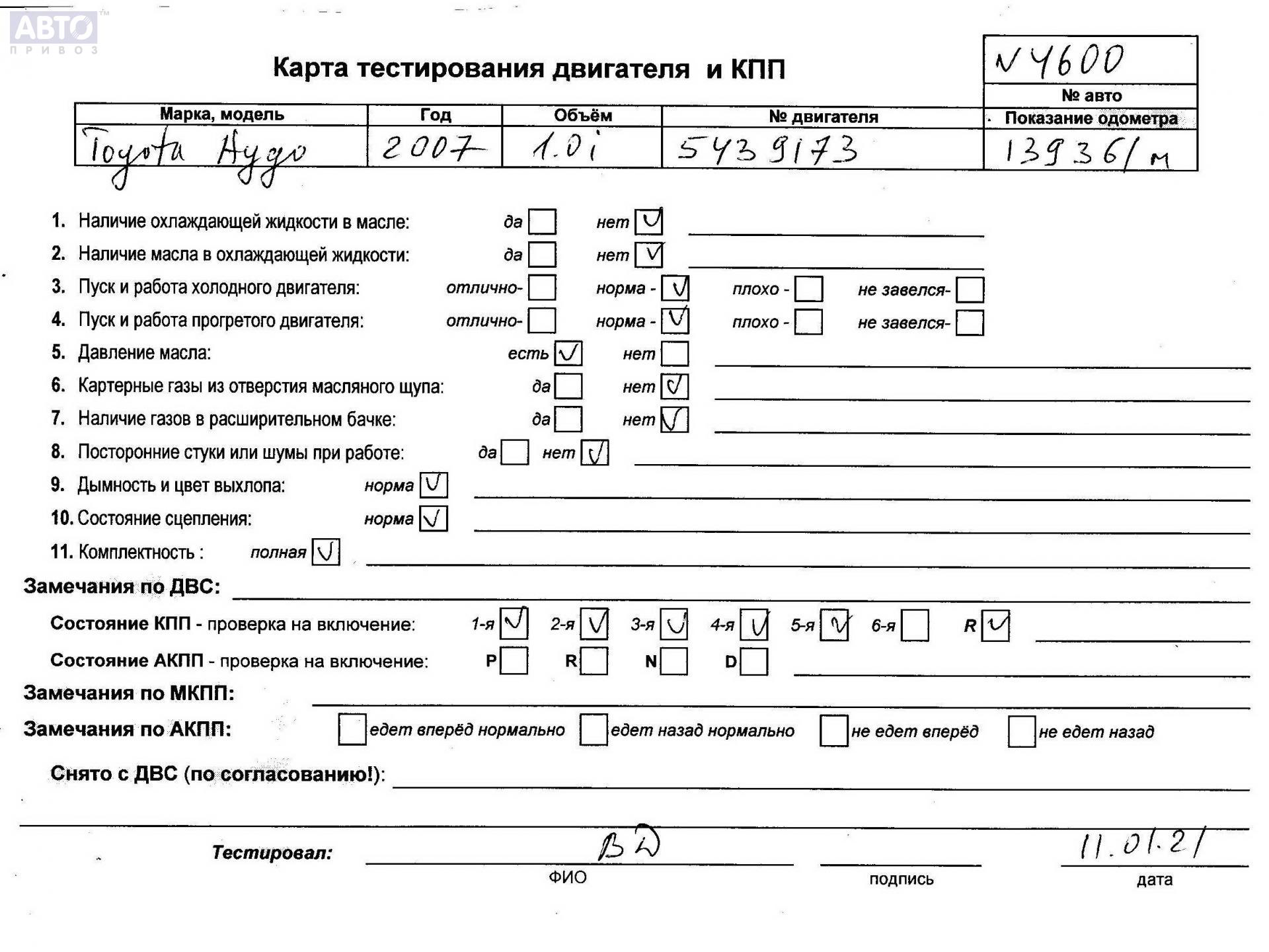| Автомобиль / VIN: | V4600 JTDKG18C70N141692 |