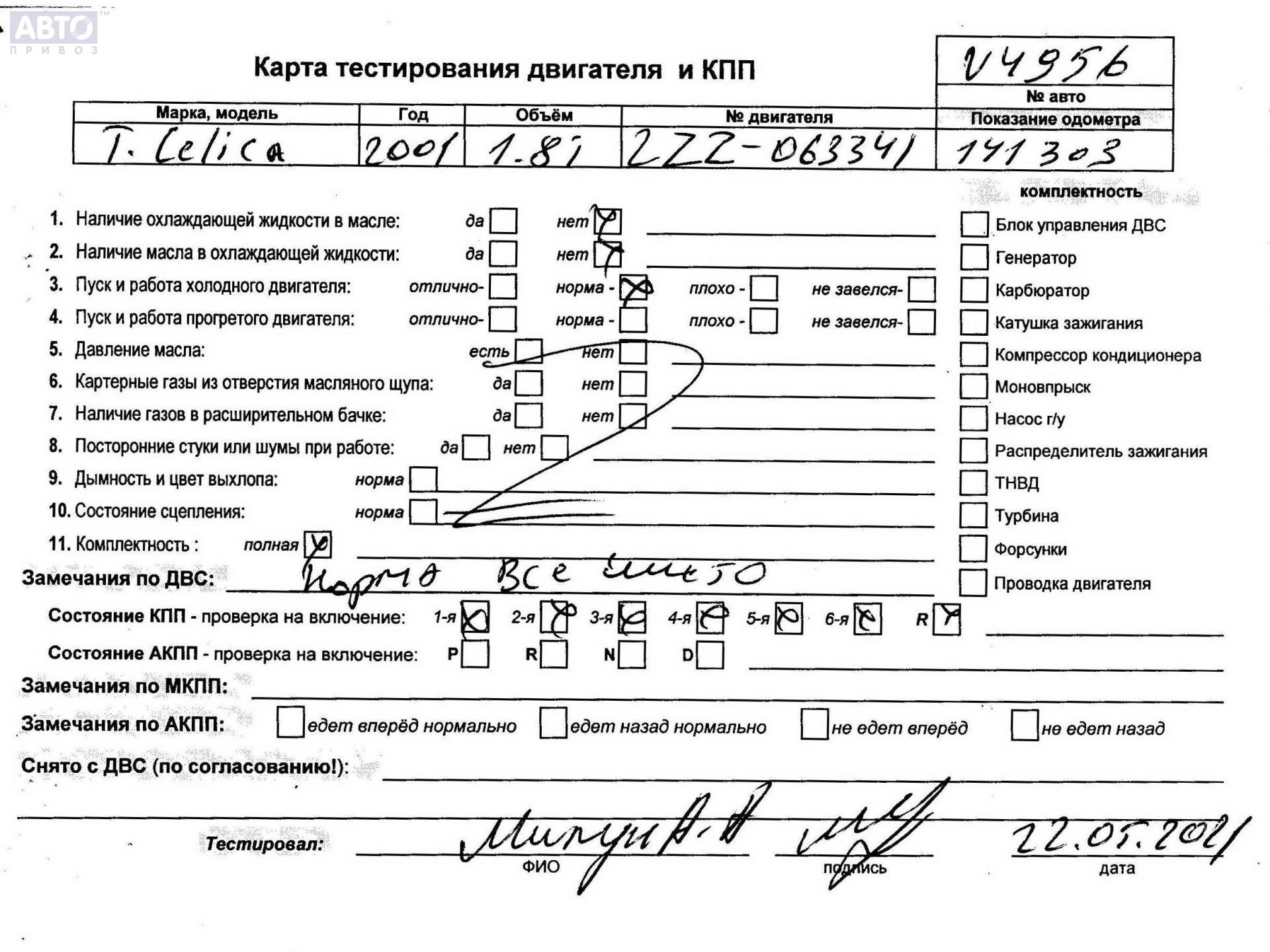 | Марка / Модель / Год: | Toyota Celica (1999-2006) T230 2001 |