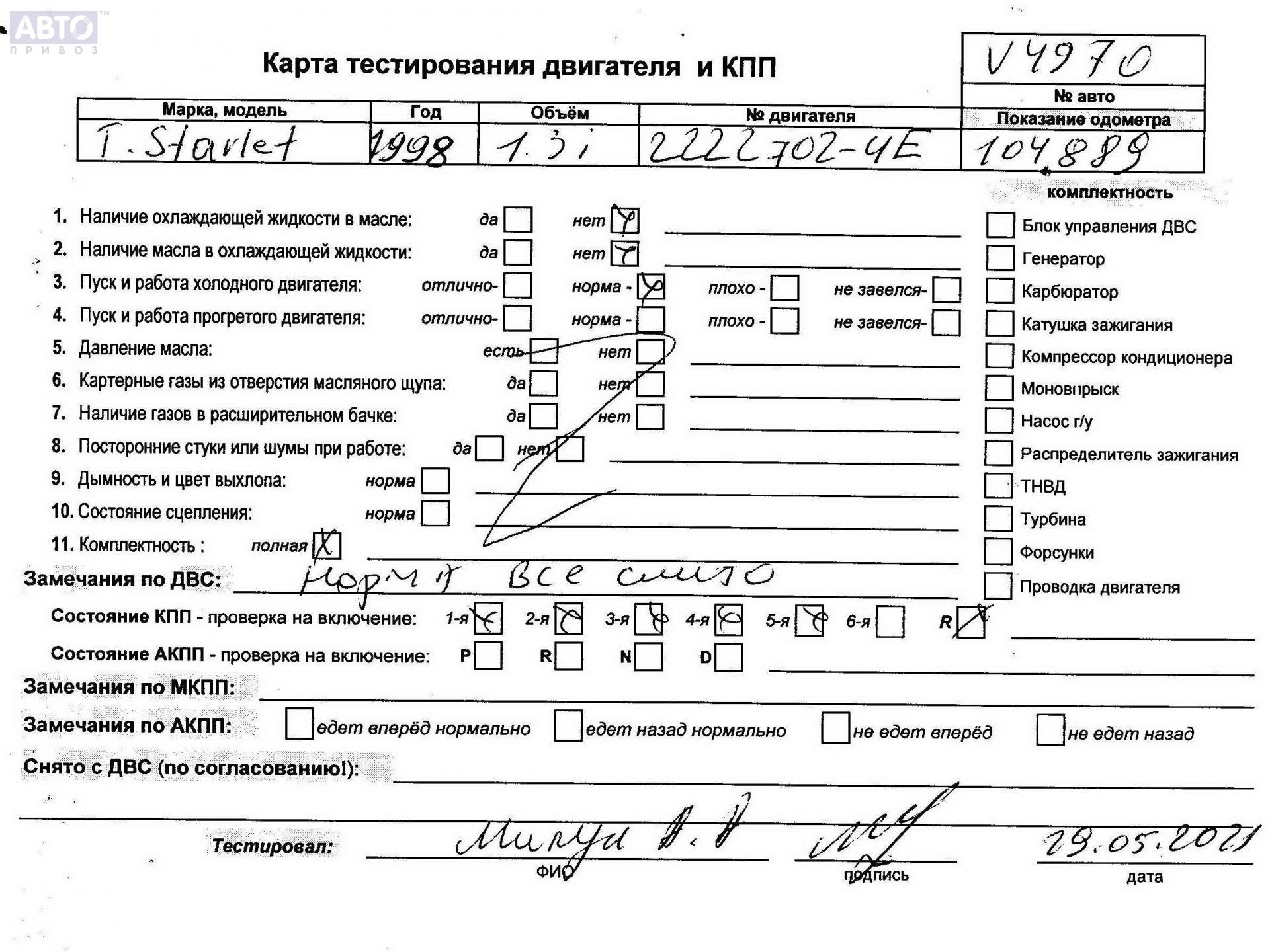 | Марка / Модель / Год: | Toyota Starlet 1997 |
