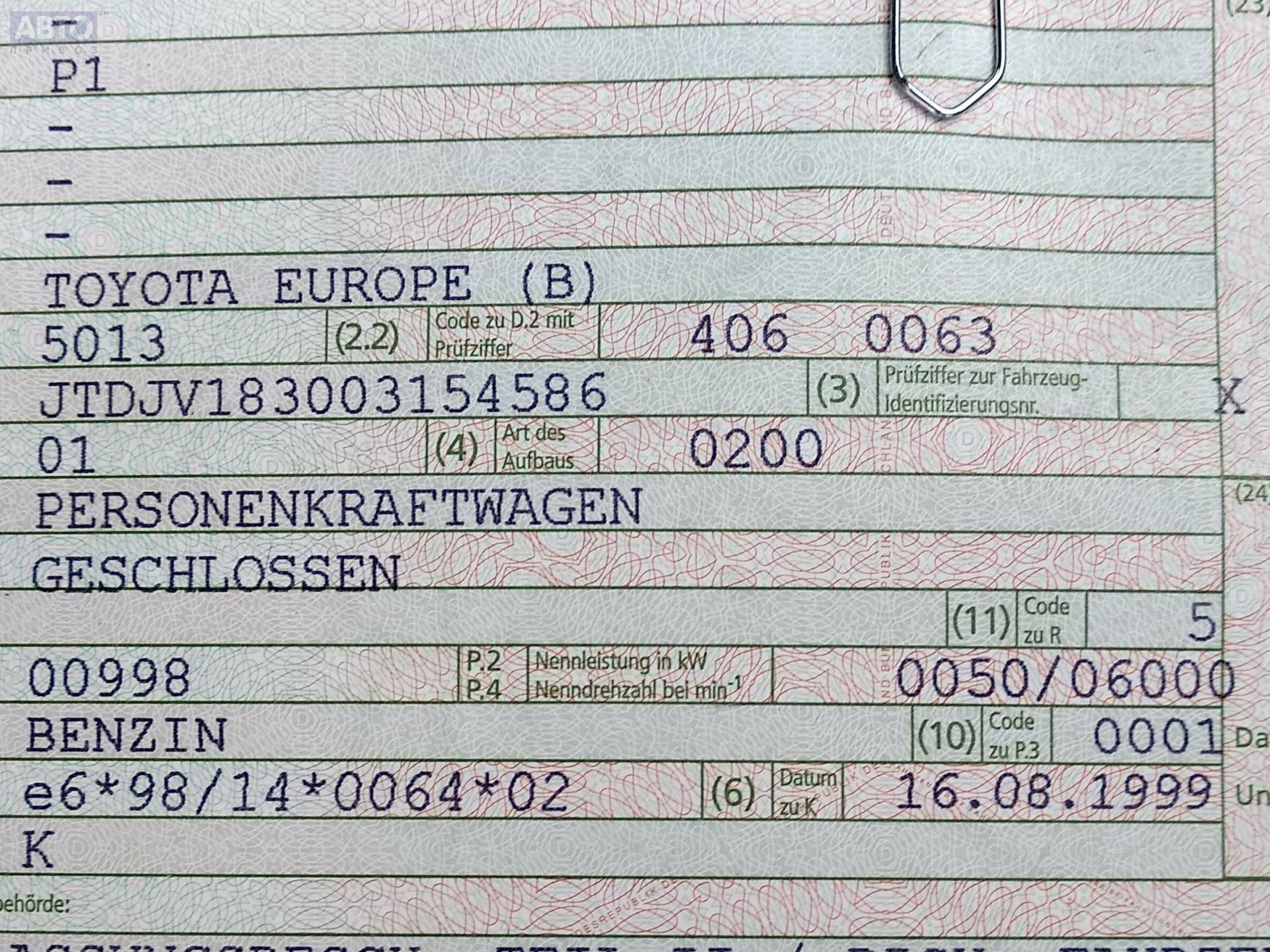 | Марка / Модель / Год: | Toyota Yaris (1999-2005) 1999 |