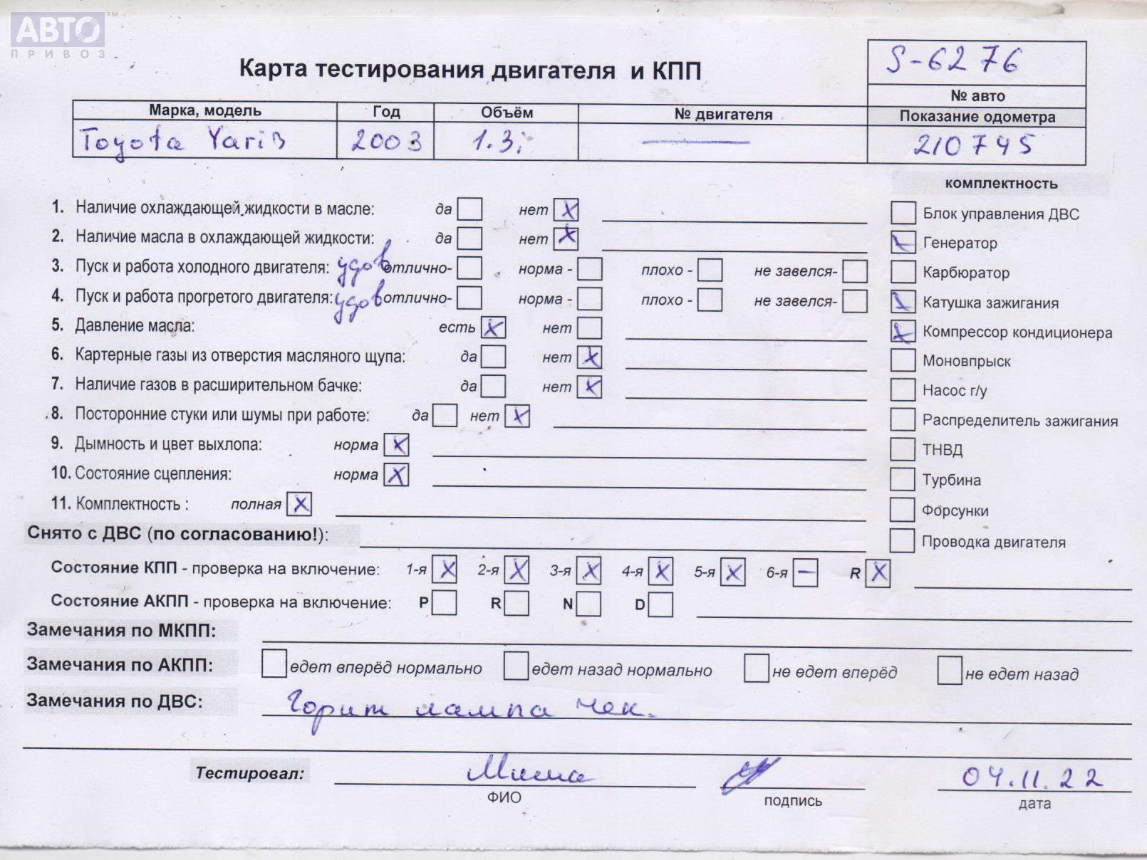 | Марка / Модель / Год: | Toyota Yaris (1999-2005) 2003 |