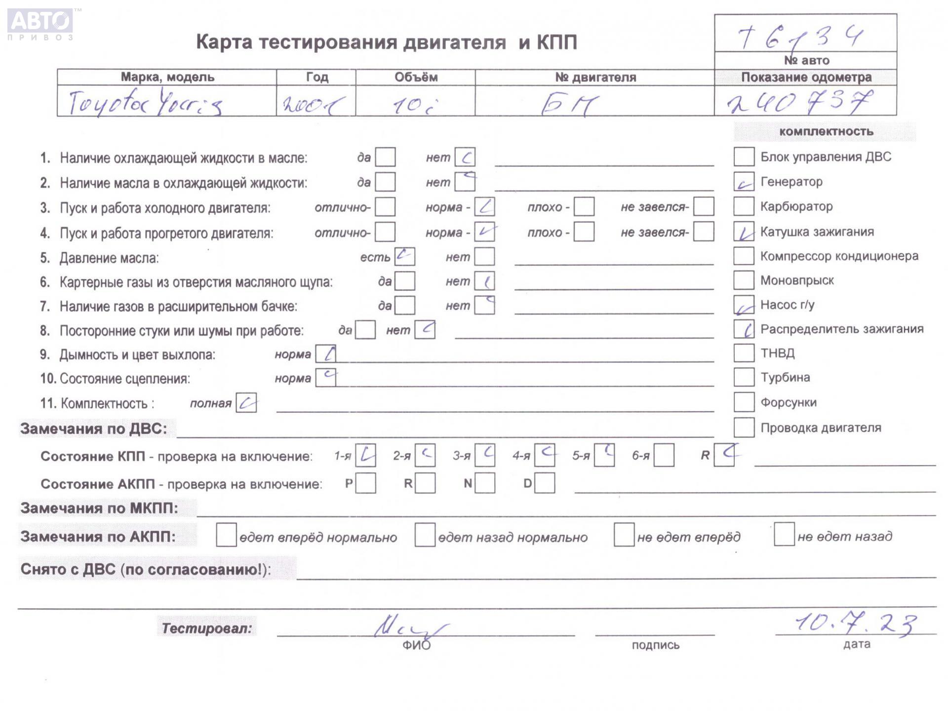| Марка / Модель / Год: | Toyota Yaris (1999-2005) 2001 |