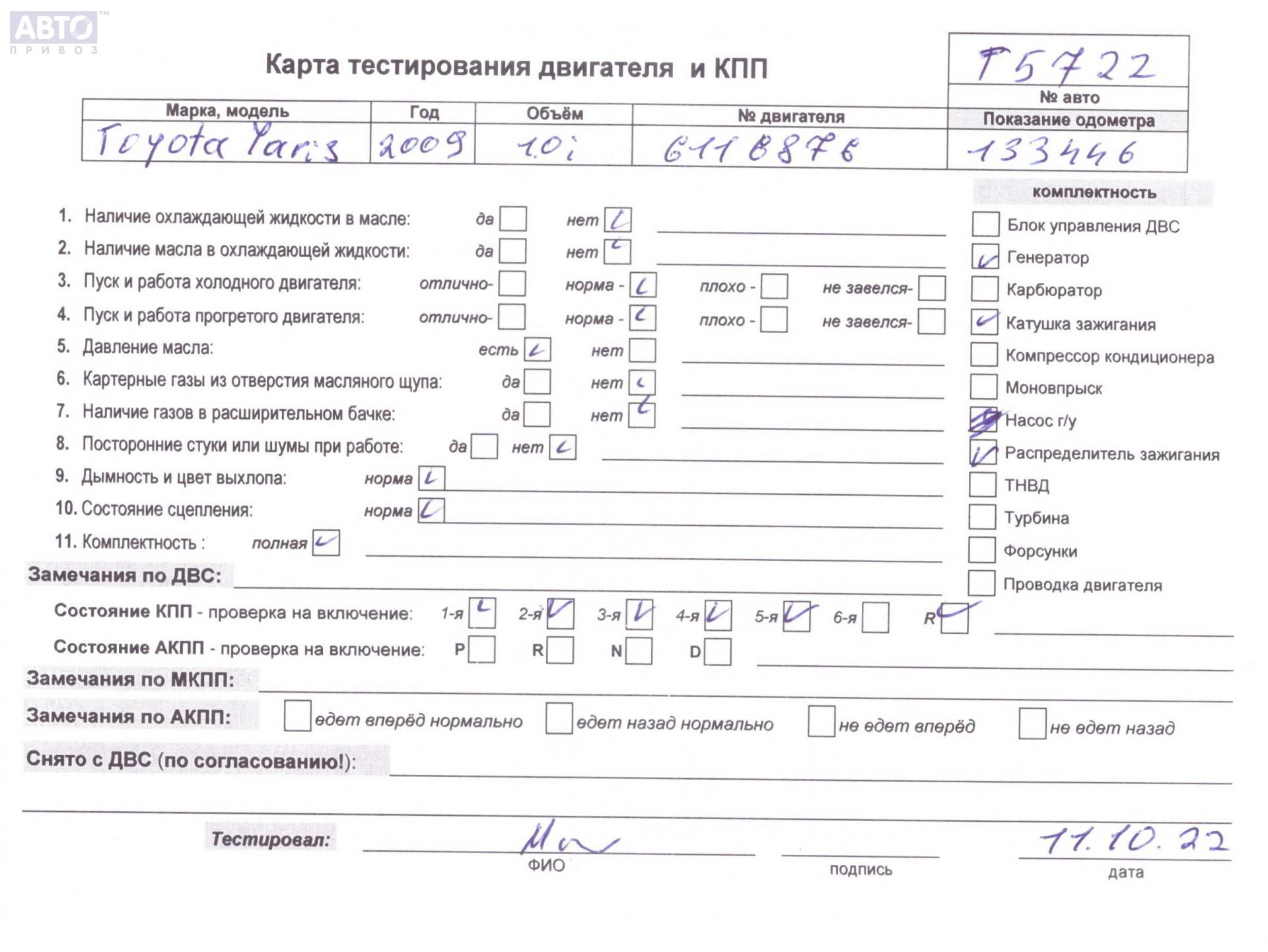 | Марка / Модель / Год: | Toyota Yaris (2005-2011) 2009 |